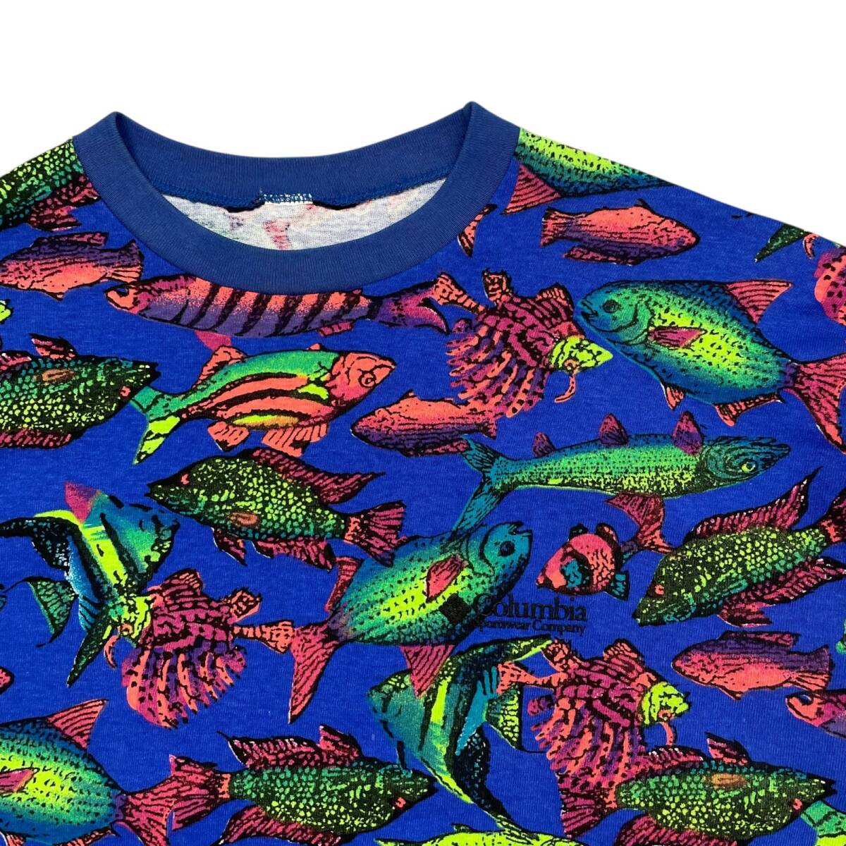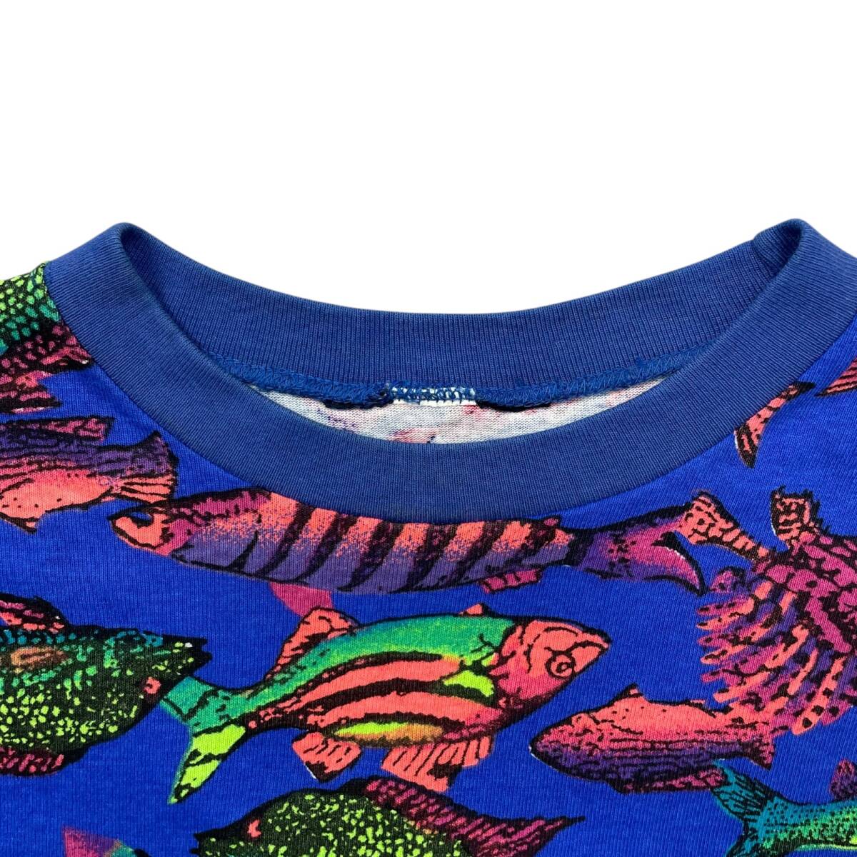 90s コロンビア フィッシュ 魚 総柄 AOP Tシャツ サイズ XL