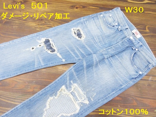 30 リーバイス 501 ダメージ&リペア加工 ストレート ジーンズ コットン100