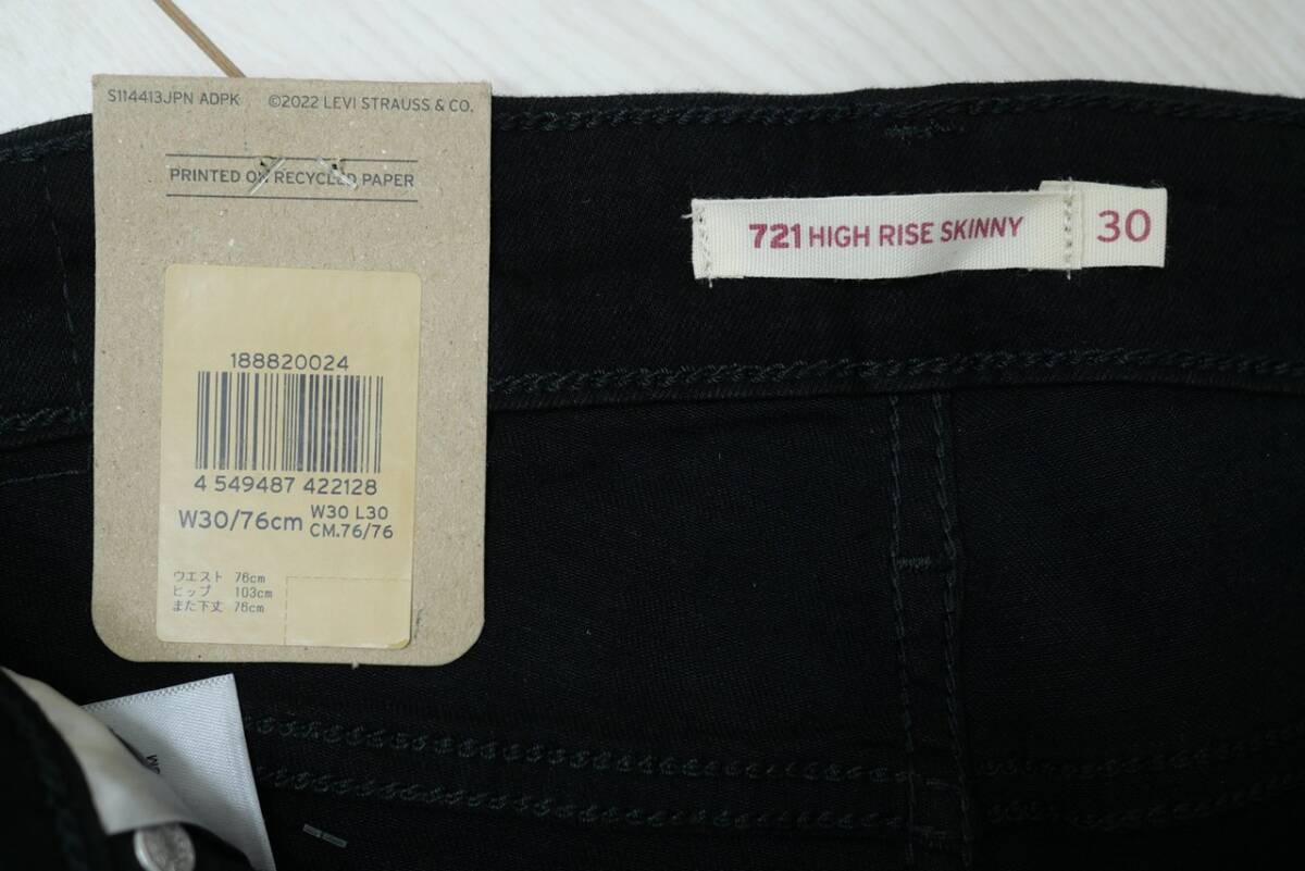 新品リーバイス18882-0024 W30/76cm 721 SKINNY ハイライズスキニー ブラック/黒 ストレッチデニム レディース