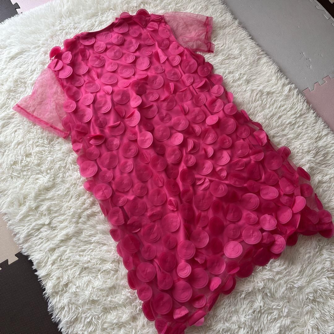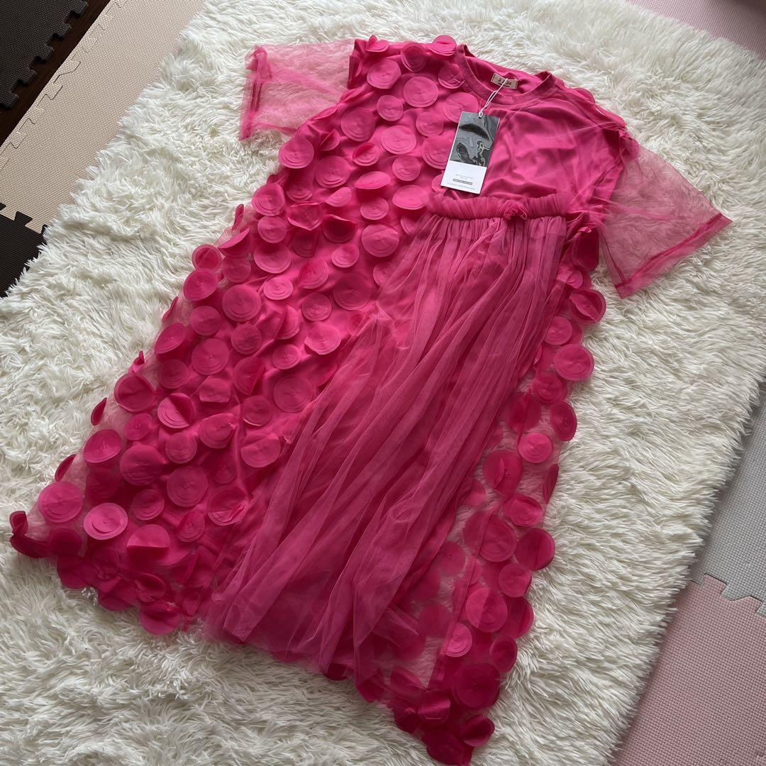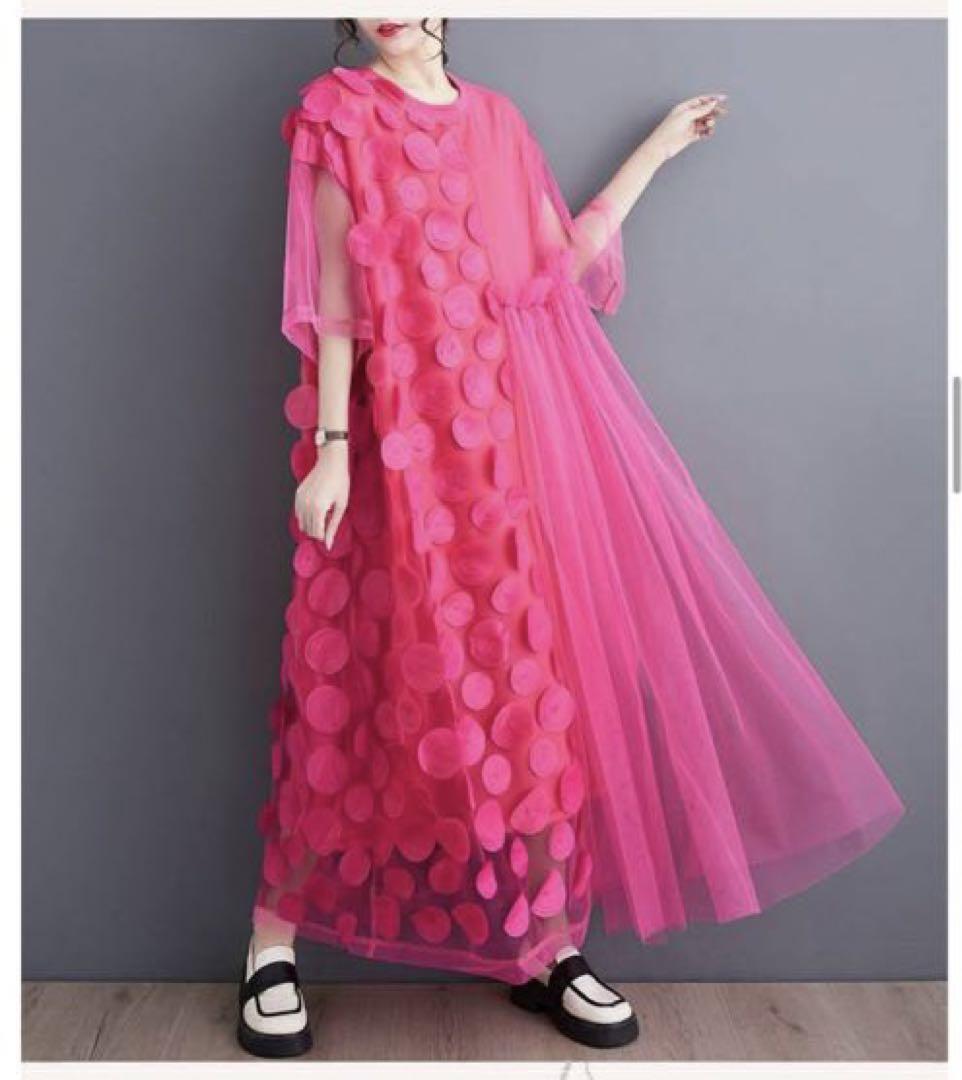 ワンピース レース ドット 大きいサイズ レディース 春夏 新品 半袖 ピンク ロング