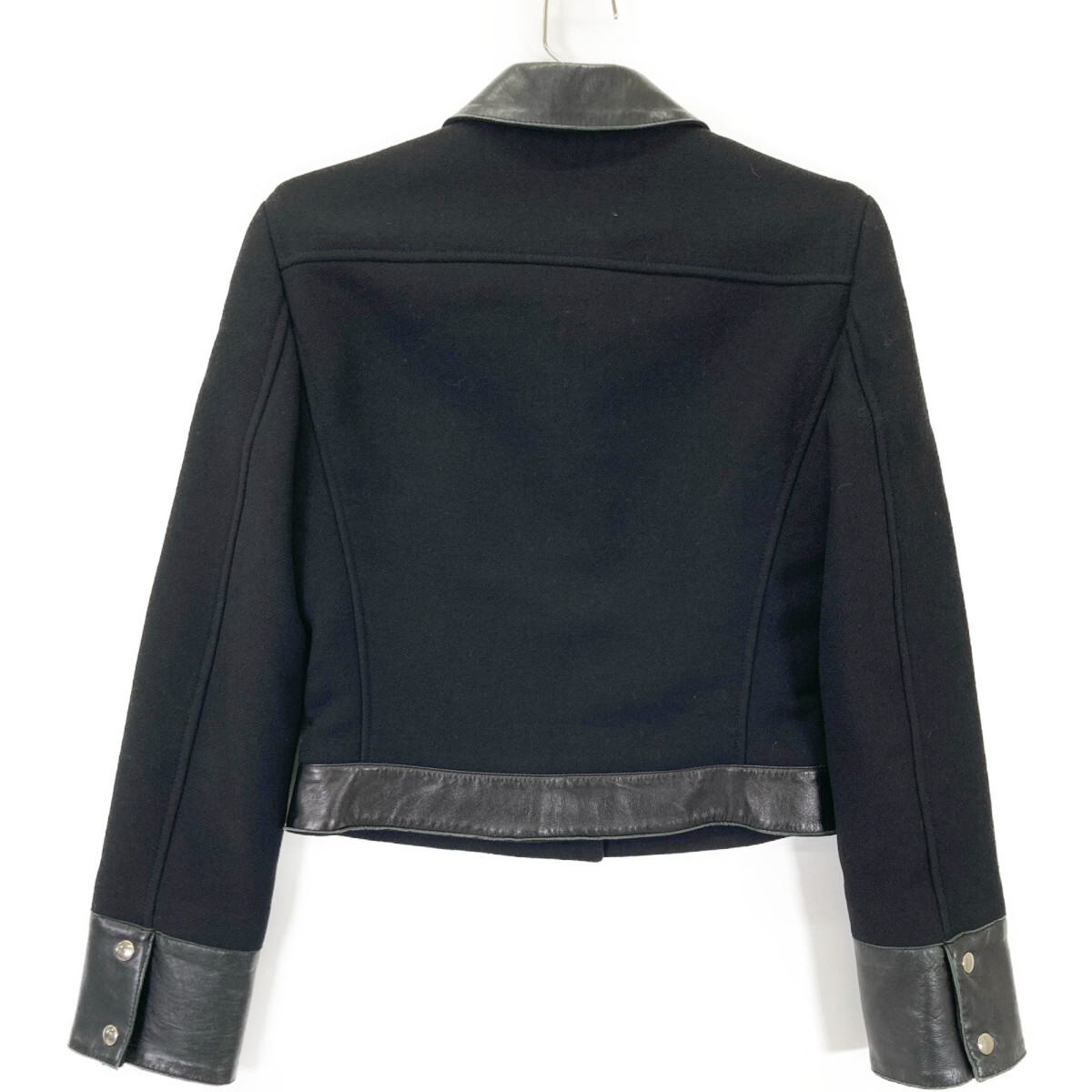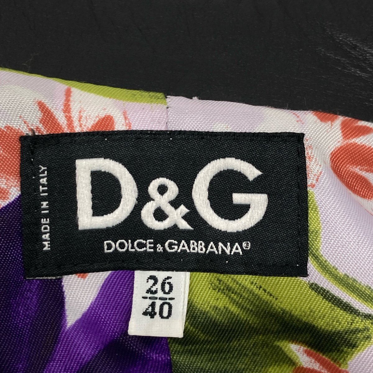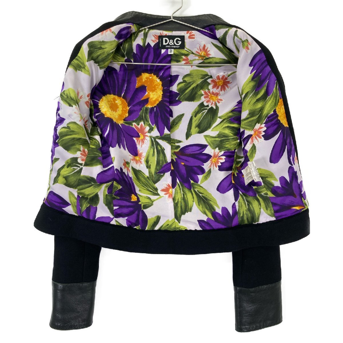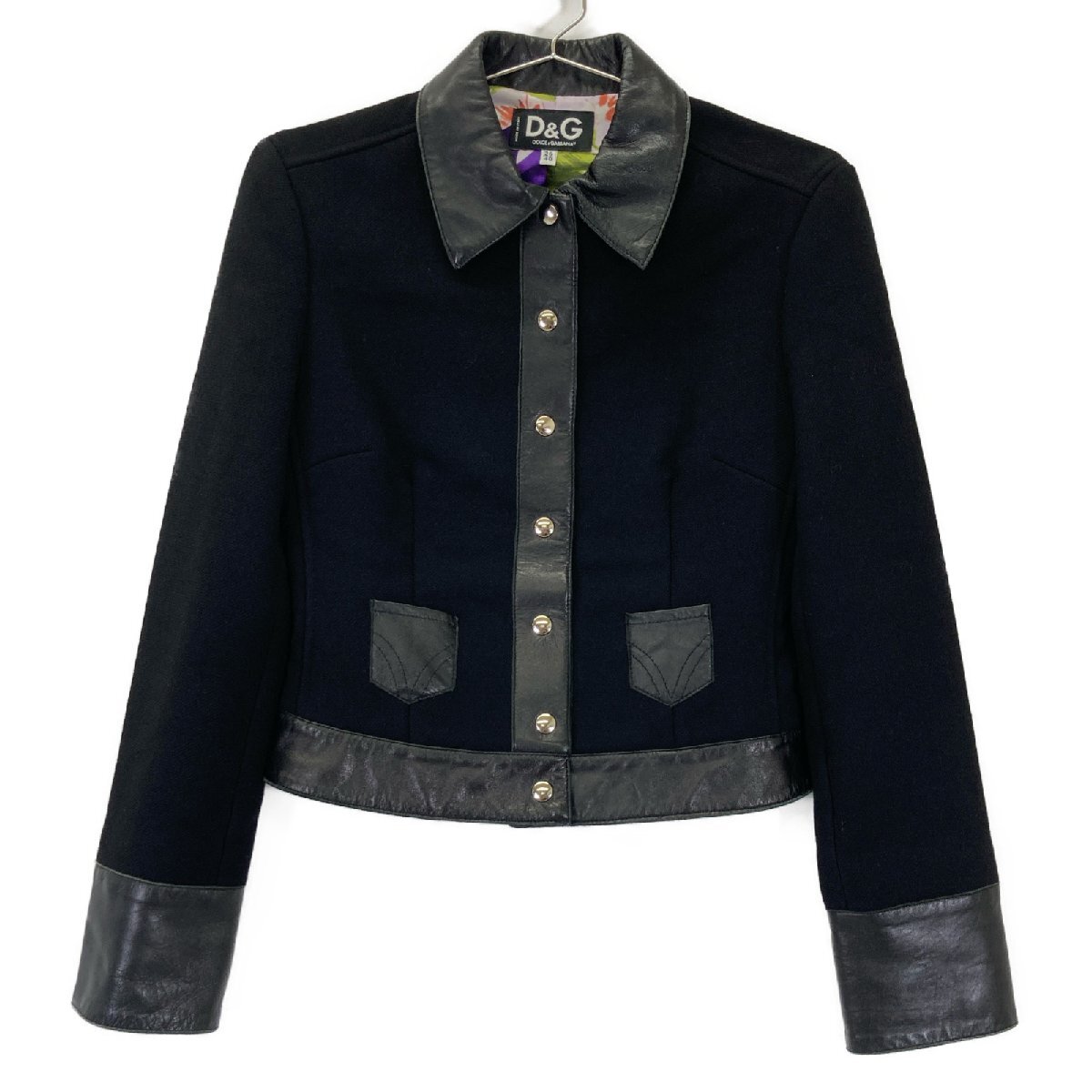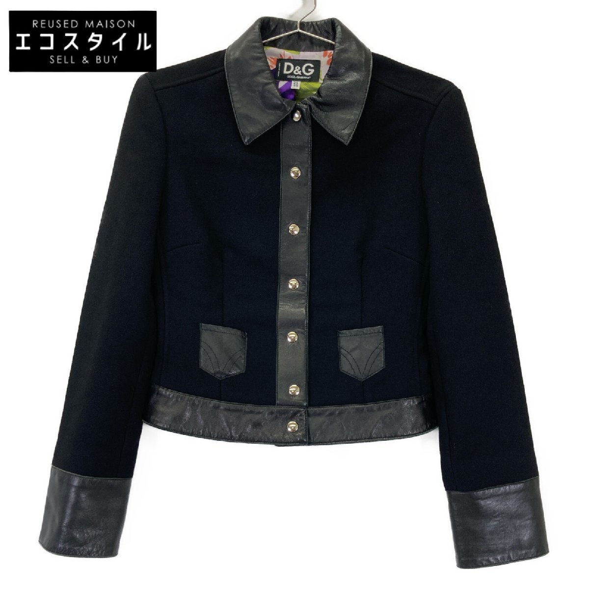 D&G ディーアンドジー 裏地ボタニカル柄 レザー切替 ジャケット ブラック 40 ジャケット ウール レディース 中古