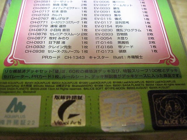 雪月で組まれたデッキです。カード60枚+特製スリーブ(イラスト:青みことん)100枚+デッキセパレーター+ルールシート+デッキ解説書+プロモカード1枚入。