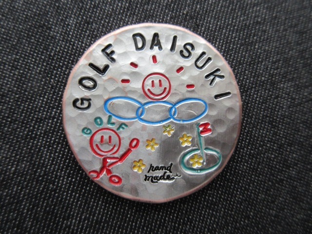 ハンドメイド ボールマーカー 錫掛け銅製 GOLF DAISUKI ハンドスタンプ名入れ無料