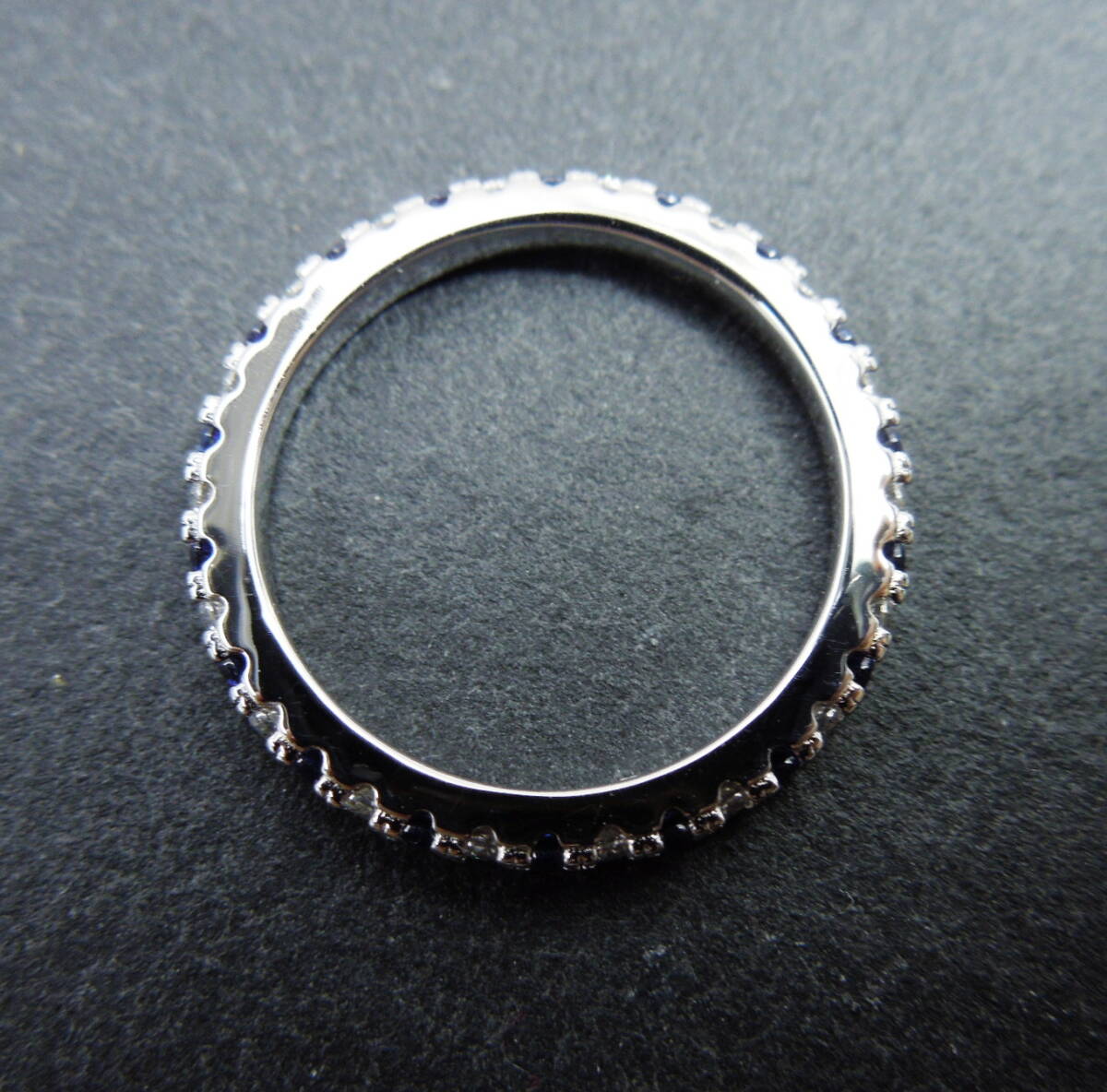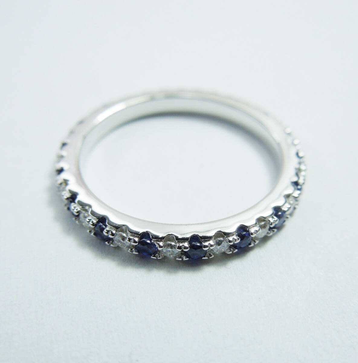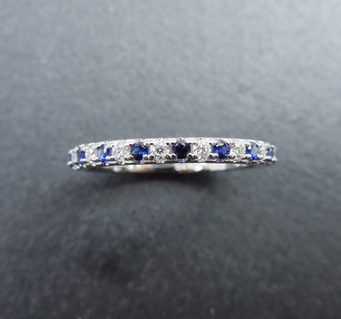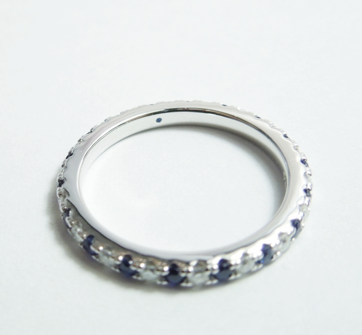 リング一周全てにモアサナイトとブルーサファイアが交互にセッティングされております。
