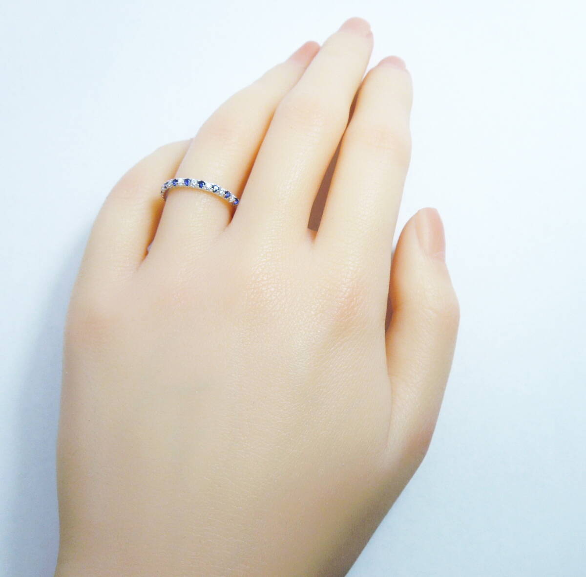 人工ブルーサファイア×モアサナイト フルエタニティリング 指輪  silver925