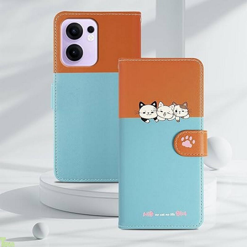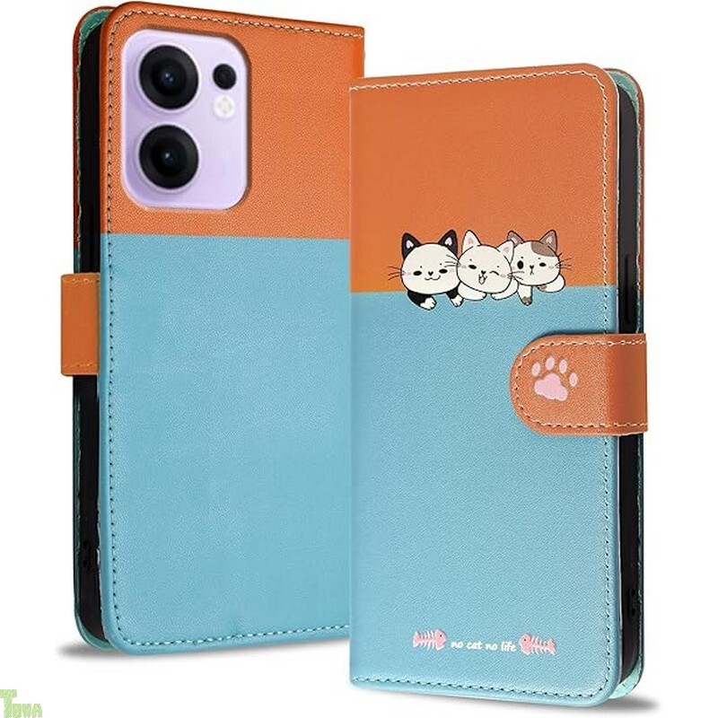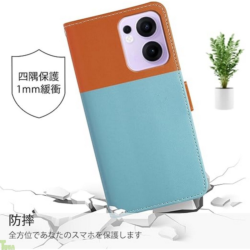オレンジ + ブルー 手帳型 ねこ かわいい 高品質 PUレザー オッポ OPPO Reno 13A 保護 財布型 スタンド機能 カード収納 ケース カバー