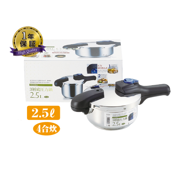 ・4合炊きの圧力鍋 生産地 : 中国 サイズ : 商品サイズ(約):W380XD210XH150mm(底の厚さ4.2mm) 商品寸法(内径):18cm 満水容量:2.5L 素材 : 本体:ステンレス鋼(クロム17%ニッケル3.5%) はり底:アルミニウム合金、ステンレス鋼(クロム16%) ふた:ステンレス鋼(クロム17%ニッケル3.5%) 取っ手:フェノール樹脂(耐熱温度150度) 圧力値:高圧100kpa/低圧60kpa ブランド : パール金属 |