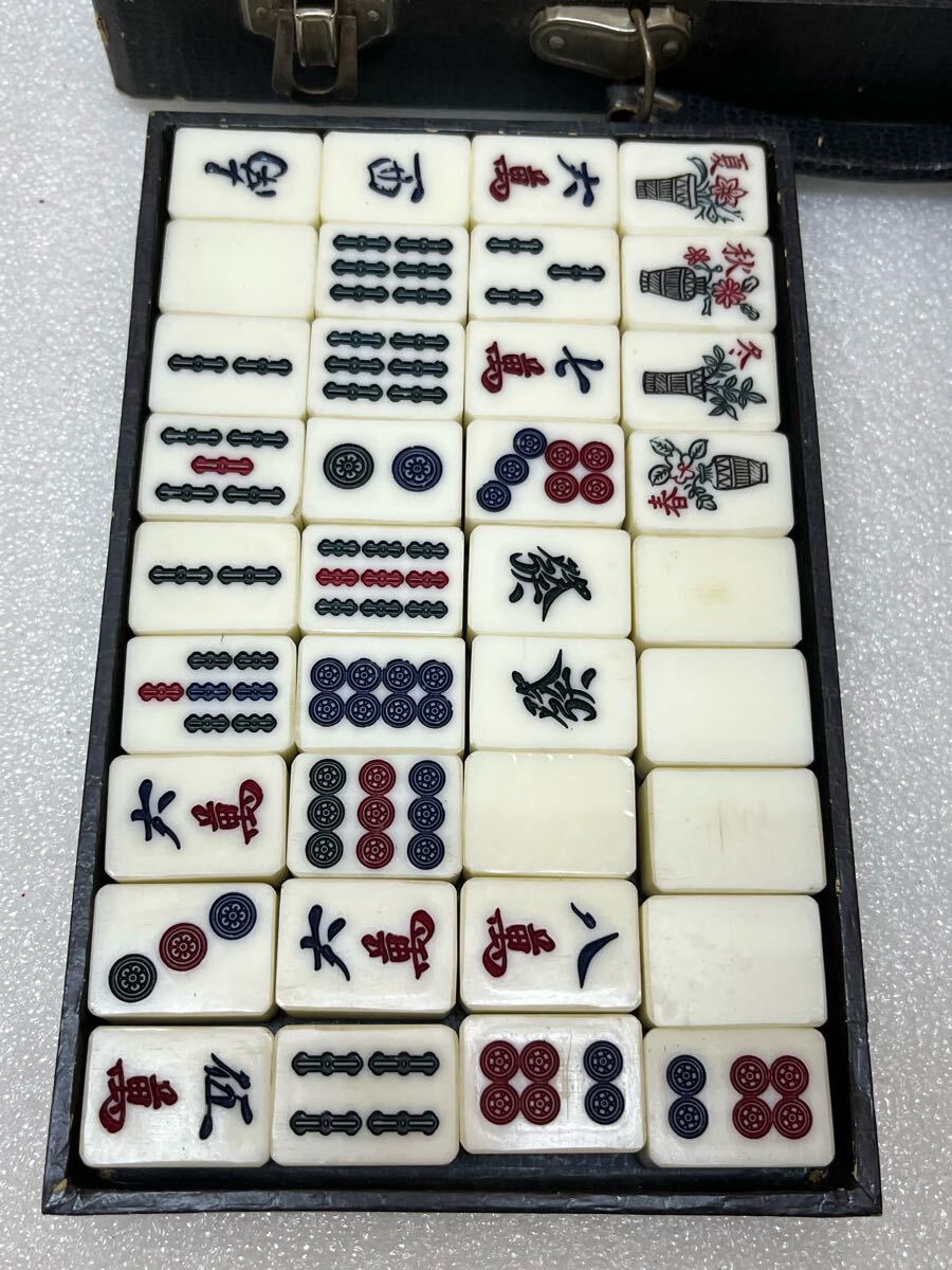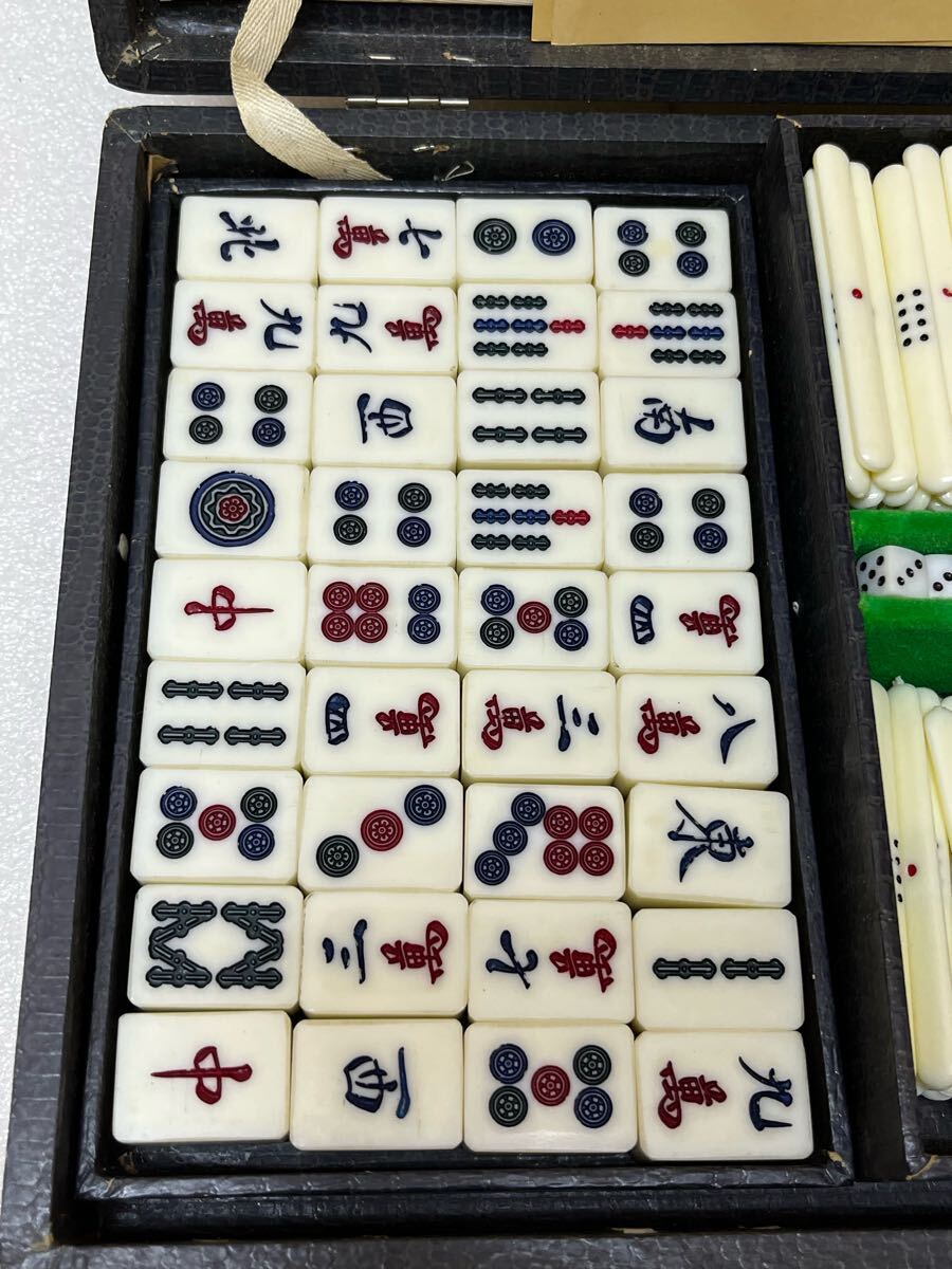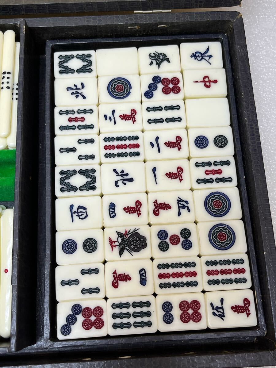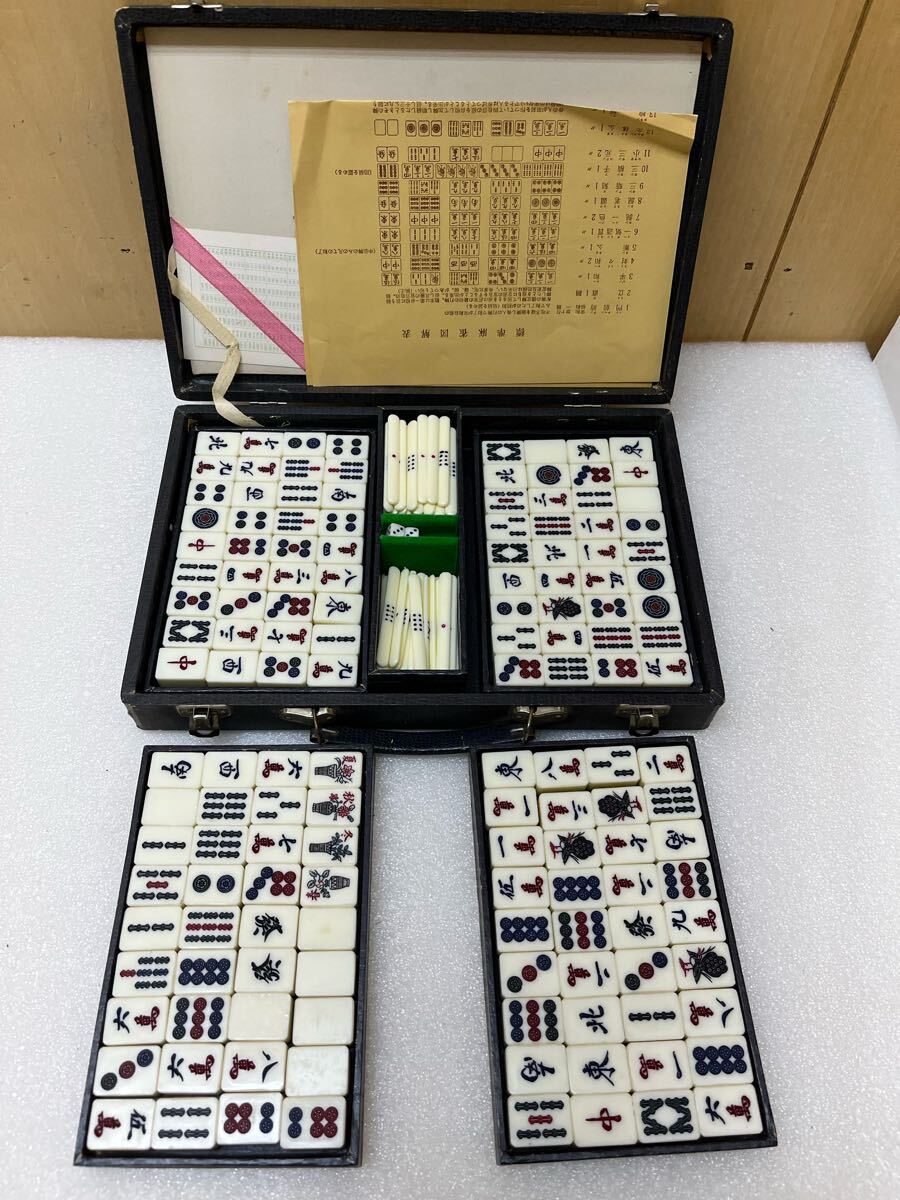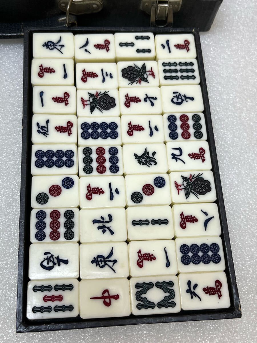 RE5546 レトロ 麻雀 麻雀牌 マージャン 点棒 背竹 ケース入り ボードゲーム コレクション 現状品 0618
