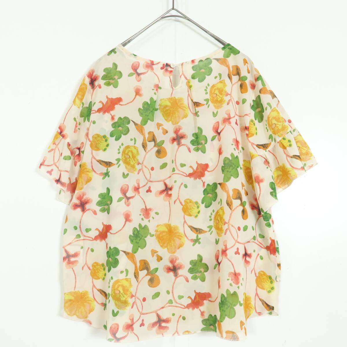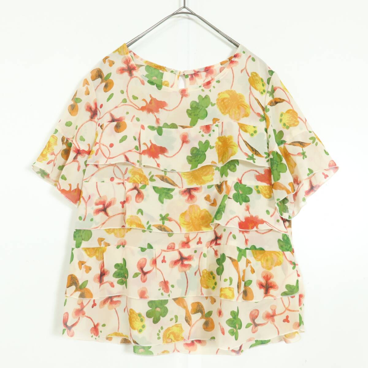 | 商品説明 | 【実寸約】肩幅38袖丈20バスト102着丈53(cm) 【サイズ表記】40 【素材】ポリエステル100% 【状態】使用感少なめの美品 【デザイン】アイボリー系 段々フリルデザインが可愛い半袖カットソーです。 カラフルなボタニカル柄が可愛い♪ シアー感があり、重ね着コーデにピッタリなアイテムです。 薄手/花柄 |