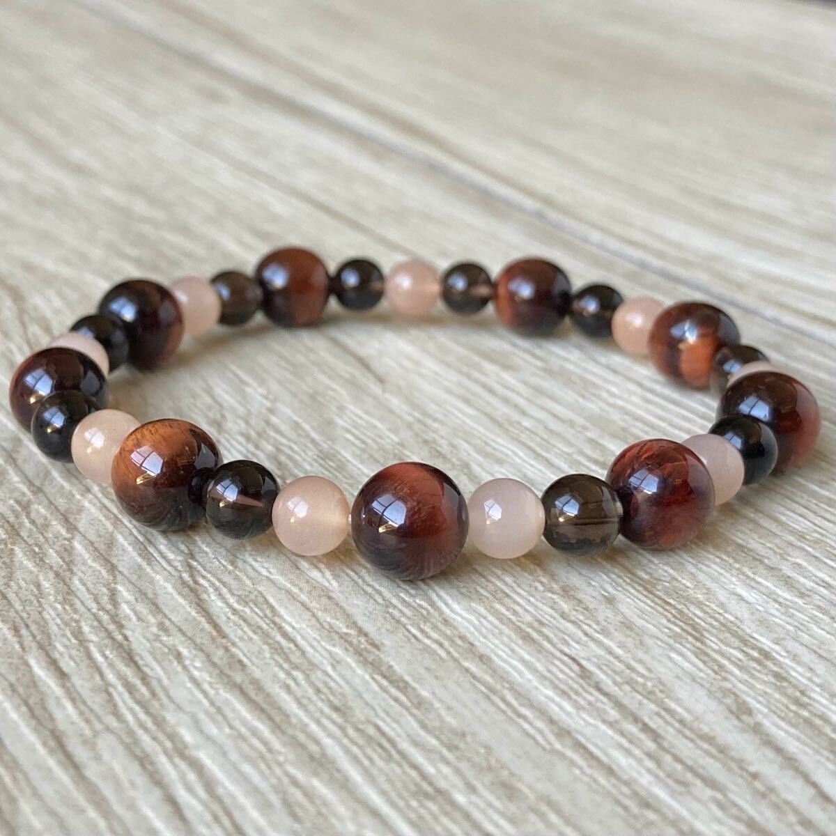 この3つを合わせる事で何かにチャレンジする時、湧き出るエネルギーと元気で前向きになれ、成功を勝ち取ることができるそんなパワーストーンブレスです。