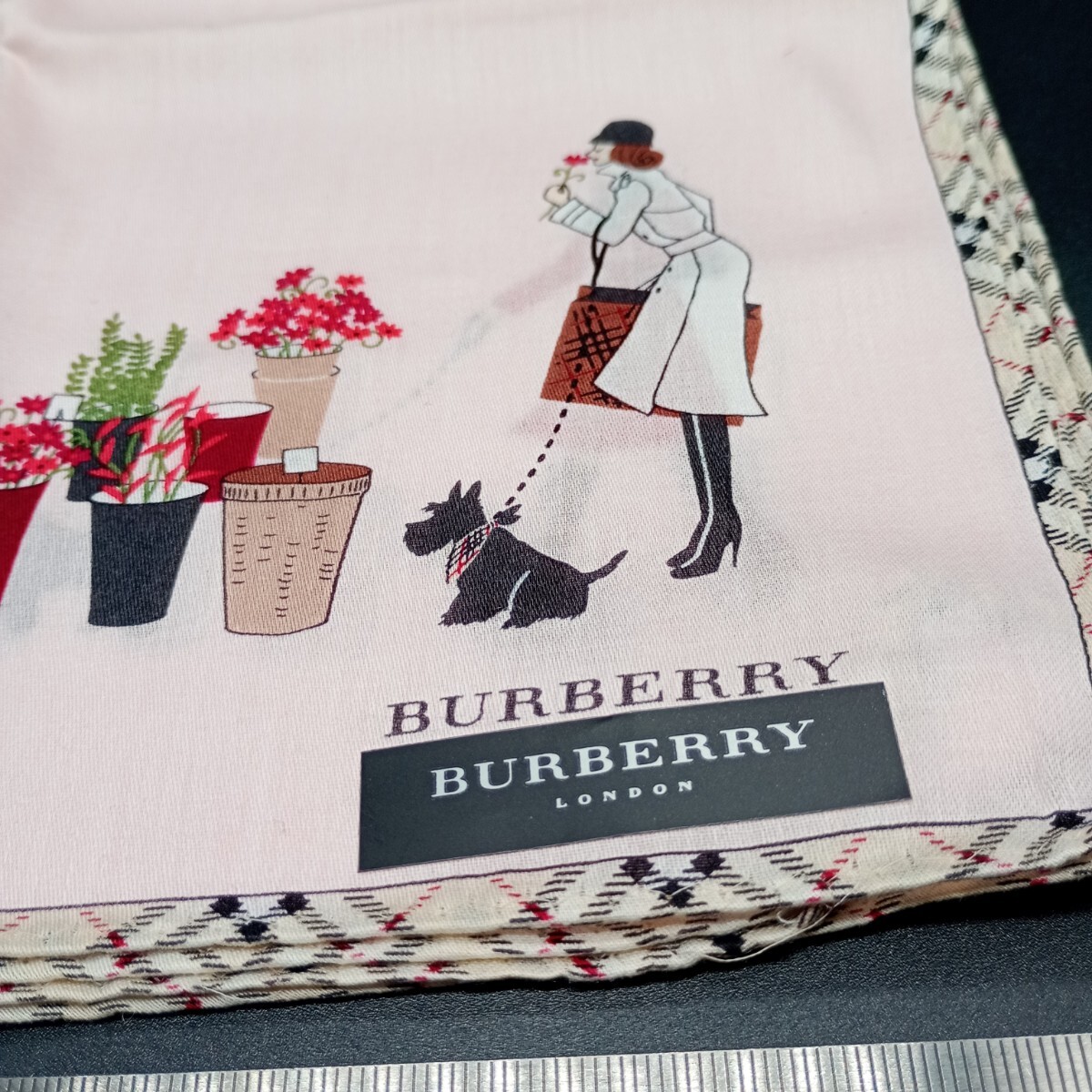 BURBERRY バーバリー ハンカチ ピンク 女性 テリア ふちチェック no.3020