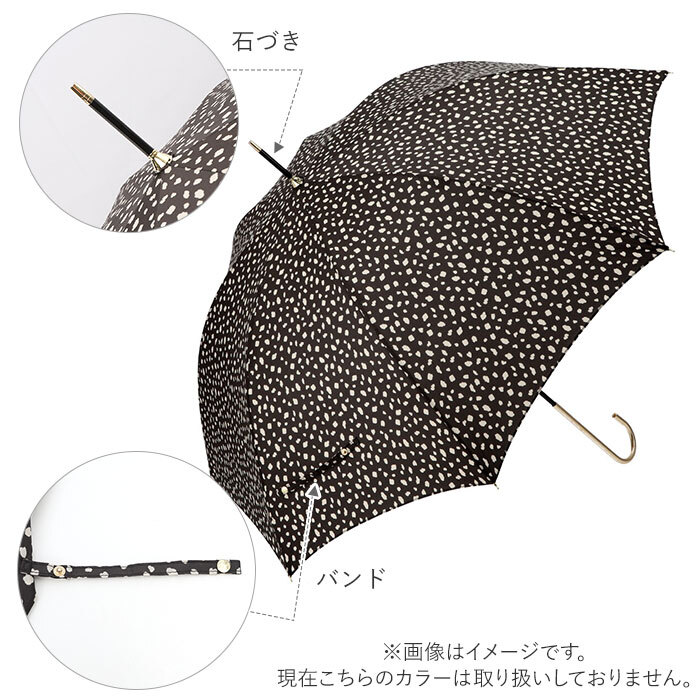 | 注意点 | ※※製品には尖った部分があります。 ※常に周囲の安全を確認してご使用下さい。 ※傘の開閉時には、顔や身体から離して使用して下さい。 ※傘生地には防水撥水加工を施し、縫製には撥水糸を使用していますが、激しい雨や長時間のご使用では雨が染み込むことがございます。また飾り加工部分(刺繍、ステッチ、パイピング、テープ等)はデザインの特性上、完全な防水撥水加工が難しい場合があり雨が染みやすいのでご注意下さい。 ※ハンドクリームや日焼け止めクリーム等が、生地・手元の色落ちの原因になる場合があります。 ※ステッキがわりに使用しないで下さい。 ※手元、または骨の先端等が壊れたまま使用しないで下さい。 ※振り回したり投げたりしないで下さい。 ※強風の時は破損する恐れがありますので、注意してご使用下さい。 ※ご使用後は陰干しして充分に乾燥させて下さい。濡れたまま放置すると生地の防水、撥水力の低下や骨の劣化につながります。 ※製品には構造上、骨同士が狭くなっている箇所がありますので、手や指を挟まない様に充分に注意してご使用下さい。 ※傘骨にグラスファイバーを使用している場合は、破損した際に破損部分を触るとトゲが刺さる場合がありますので、直接触らないようにして下さい。 ※ご使用の際は、生地をほぐしてから開閉して下さい。無理に開くと骨が折れたり、傘全体に負担がかかる原因となります。 ※傘は必ず手に持ってご使用下さい。 ※お子様には保護者の方からご注意下さい。 ※カメラやモニターの性質により、画像と実物の色の違いがある場合がございますのでご理解願います。 |