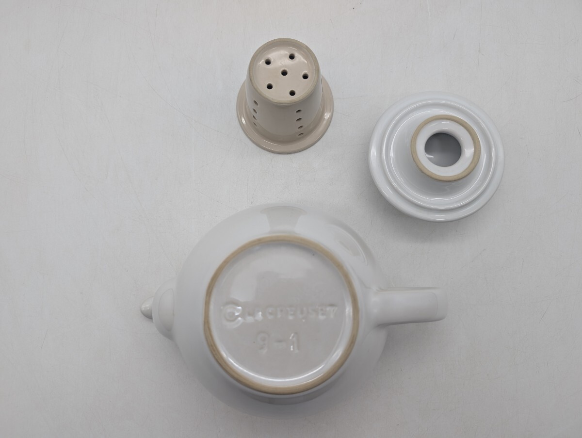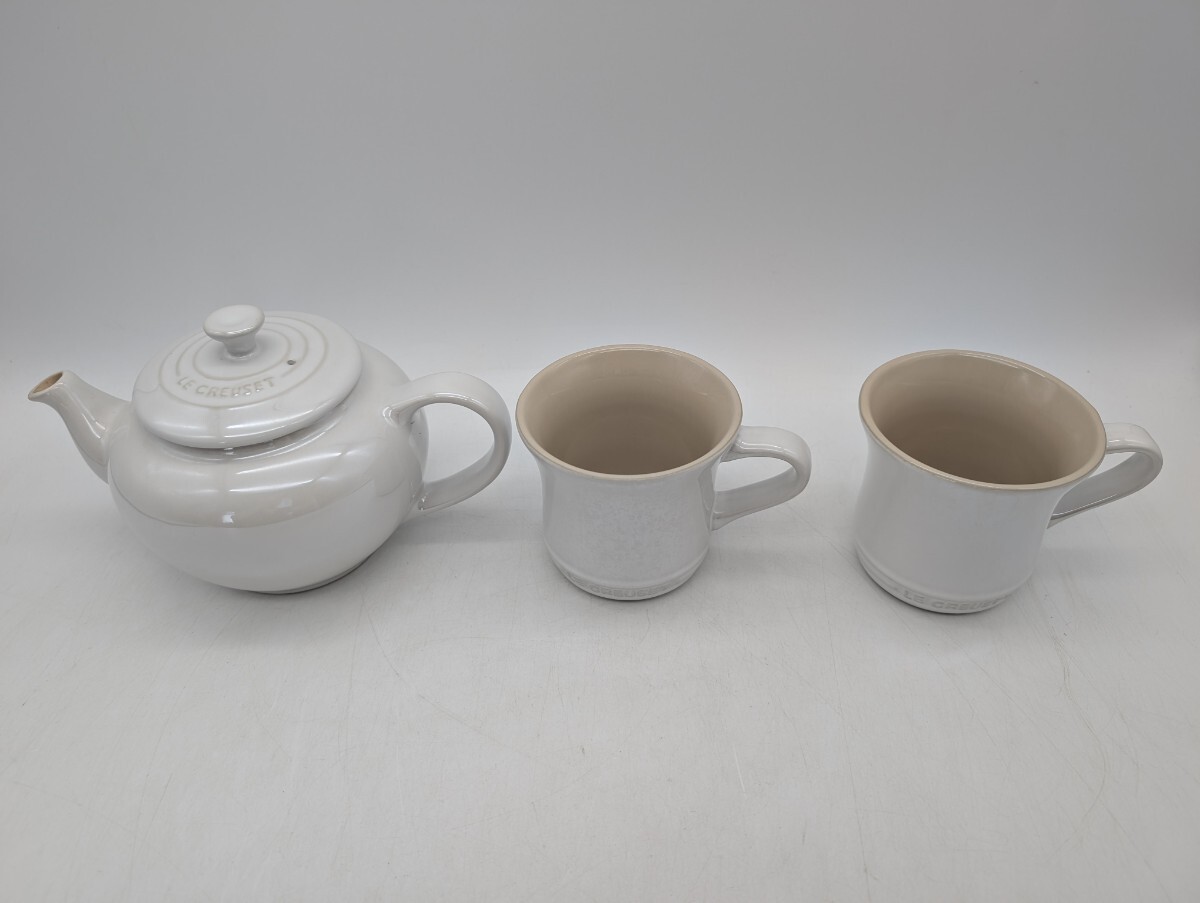 送料無料 LE CREUSET ル・クルーゼ ティーポット マグカップ 3点セット ホワイトラスター ルクルーゼ 白×ベージュ 食器 ペア コップ