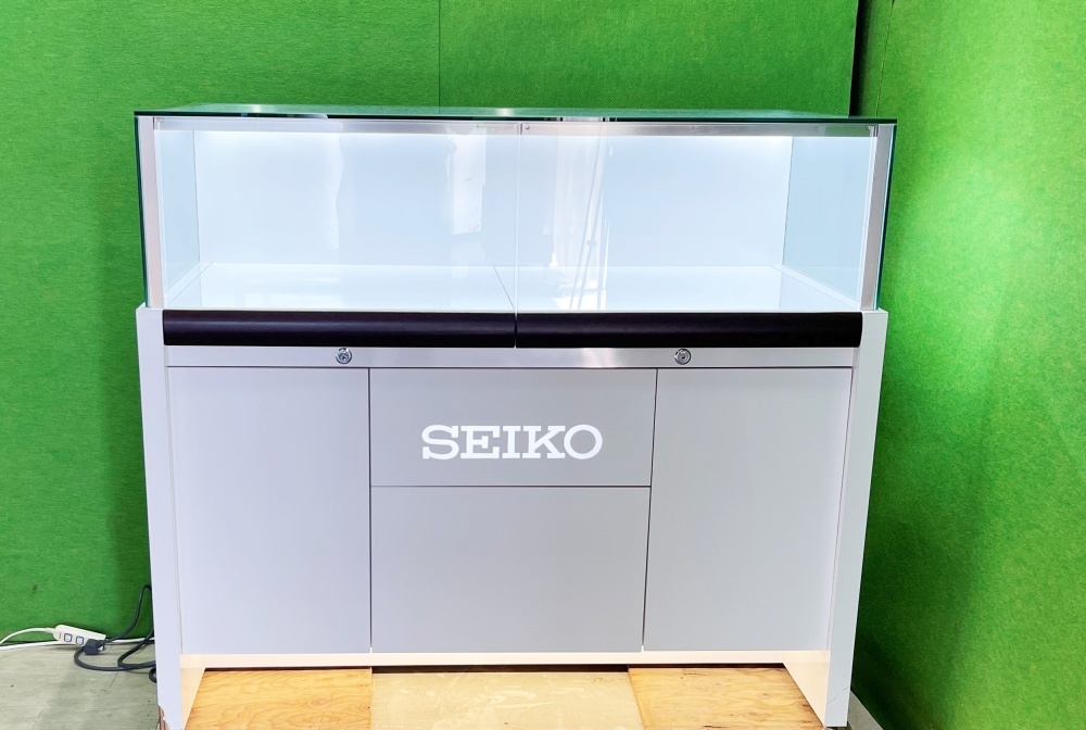 時計店より光沢ホワイトウッドのショーケースが入荷致しました。 SEIKO電飾 LEDライト内臓 ワンオフで造らせた1点物です パレットに乗せての発送になります。(福山通運の営業所渡し) ※弊社店舗にて、コンディション確認、お引き渡し大歓迎!※ |