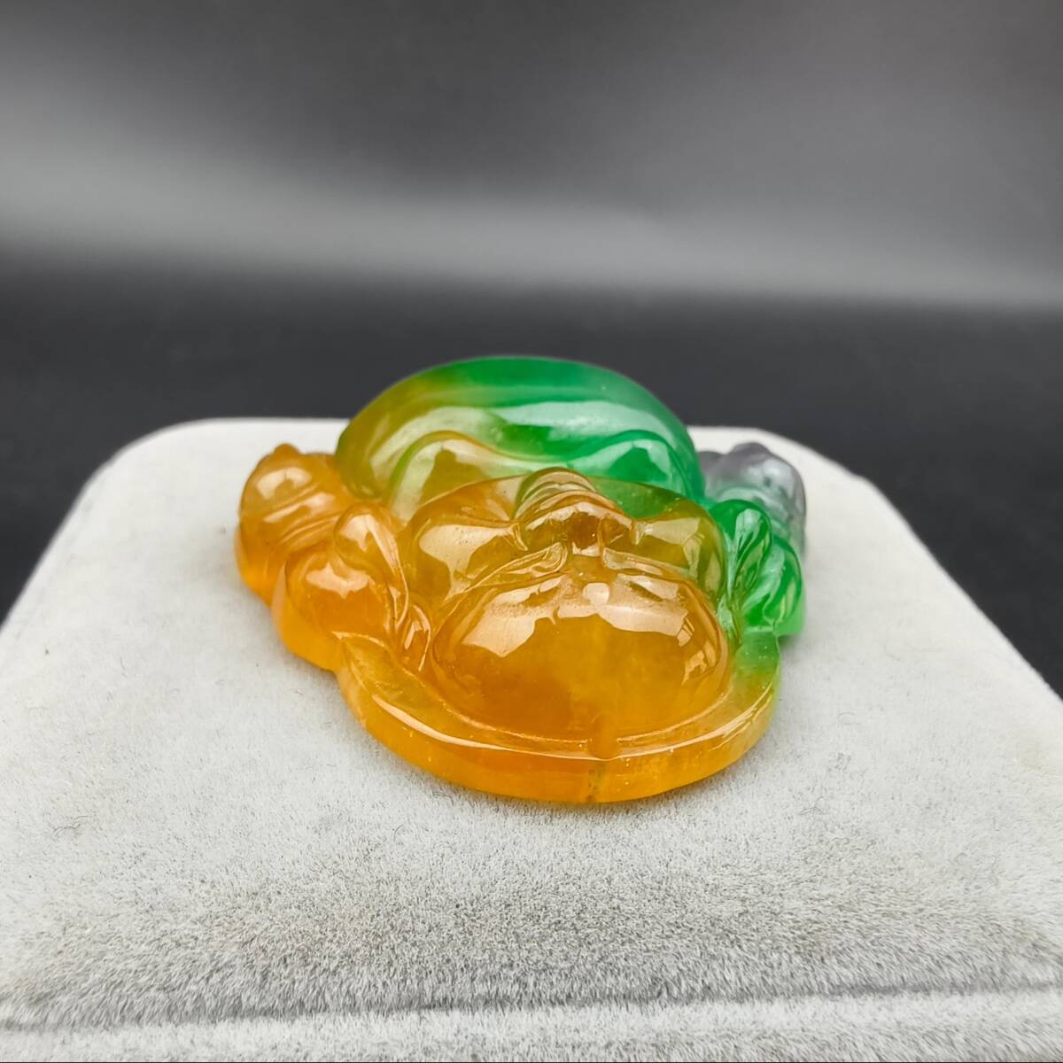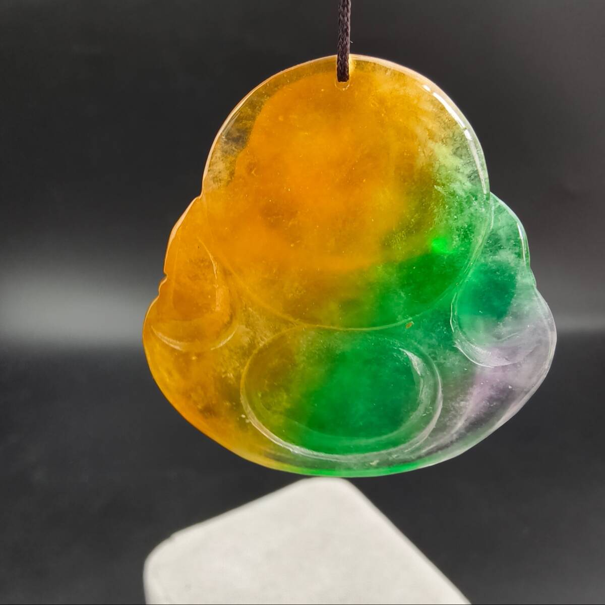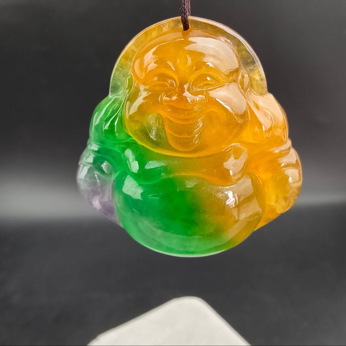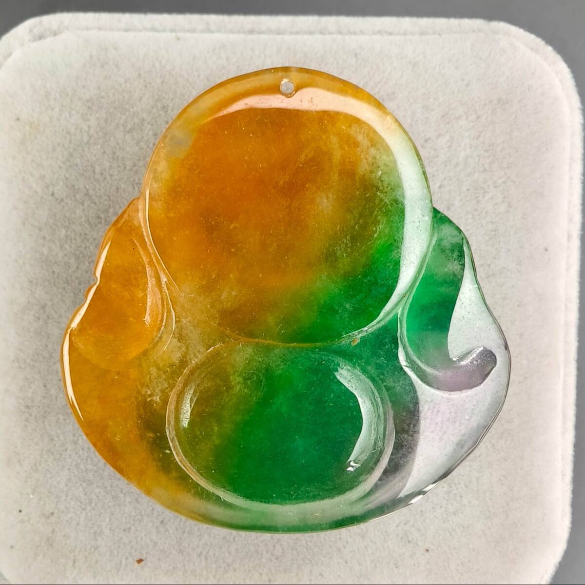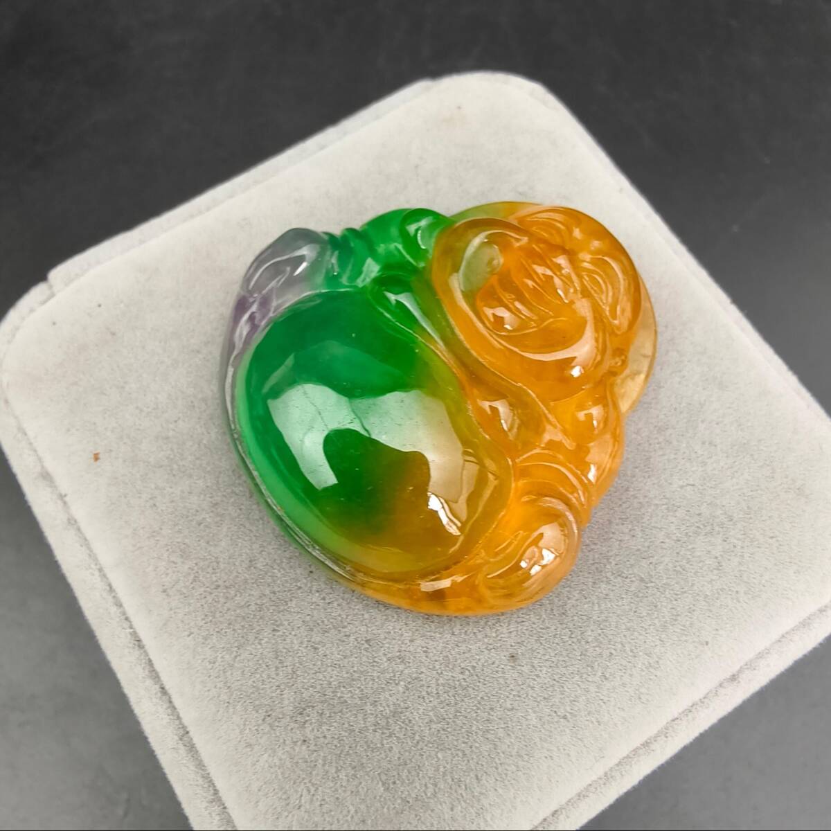【超珍館蔵】翡翠製 細密彫 彌勒仏仏公ペンダント 根付 裝身具 古賞物 古董品 古美術品 時代物 旧家蔵出 稀少珍蔵品
