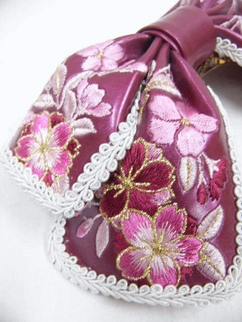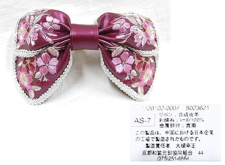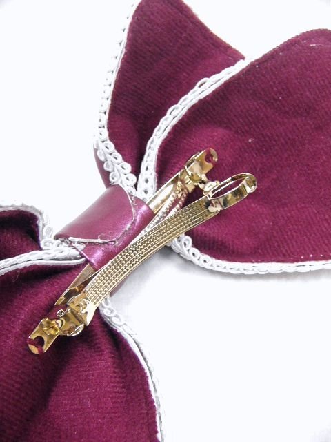 アウトレット かわいい 刺繍のついたリボンの髪飾り バーガンディー 未使用・わけあり品