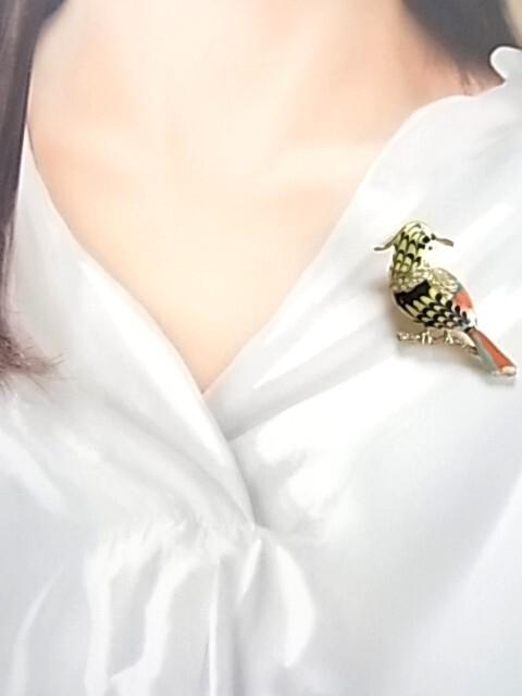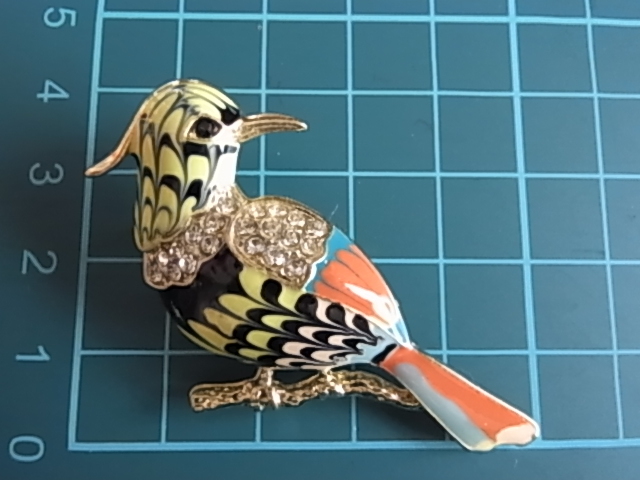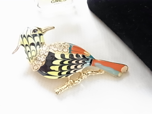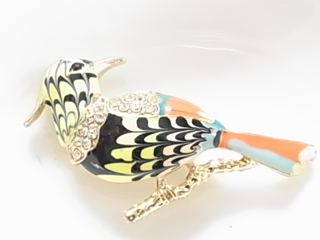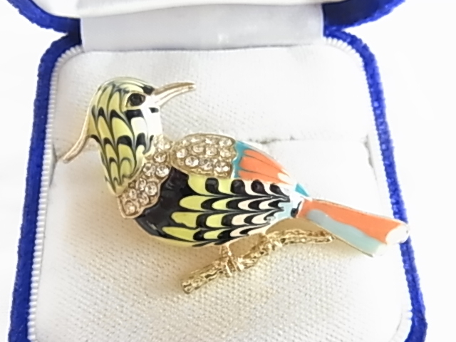 □未使用 可愛らしい小鳥 鳥さん bird バード クリアラインストーンが輝くビジュー カラフルトーン エナメル お洒落な素敵ブローチ