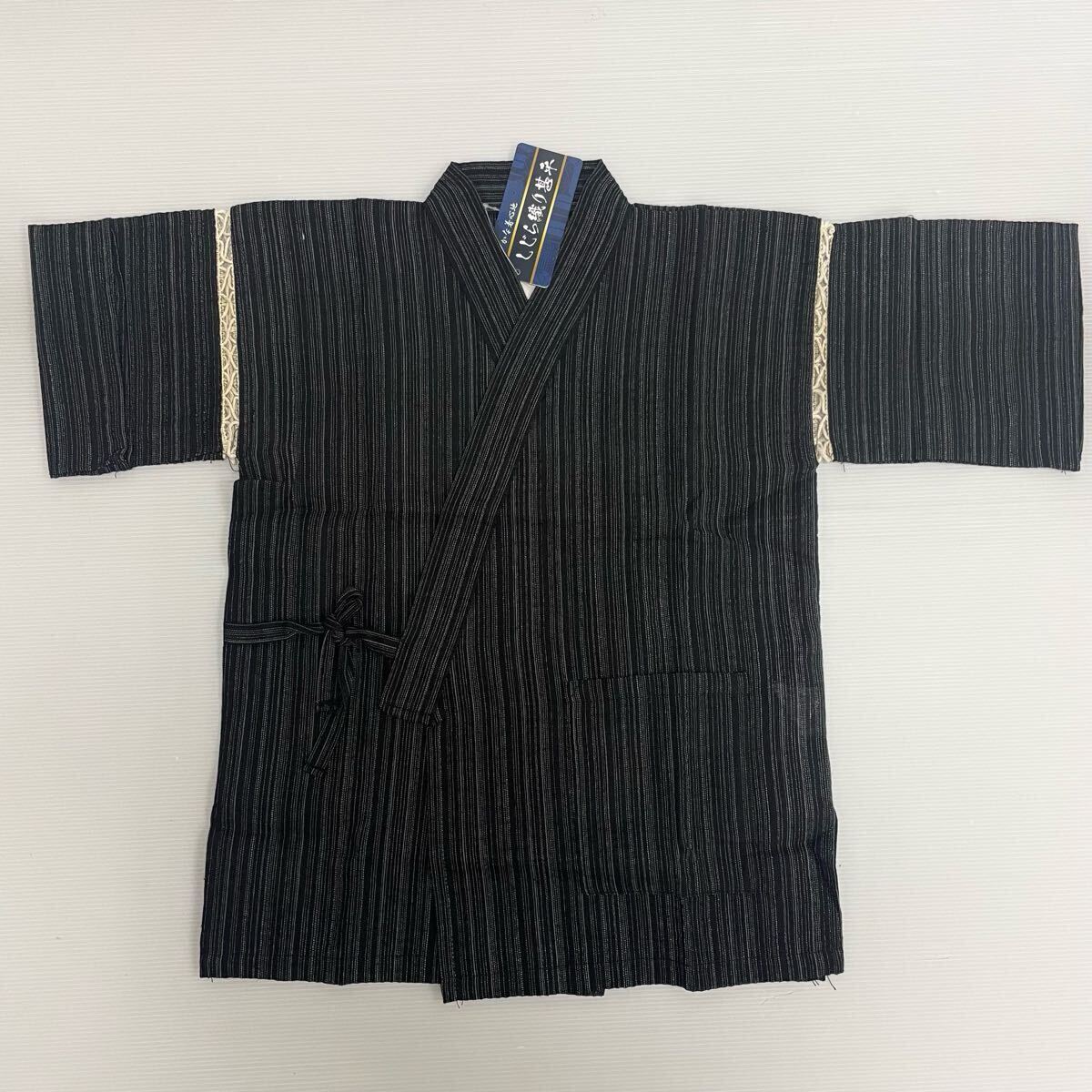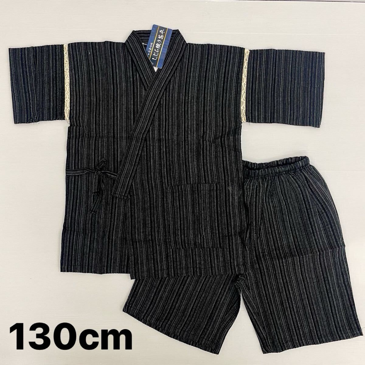 新品64318 しじら織りキッズ甚平じんべい 130cm 黒ブラックストライプ ジュニア 男の子 男子 ボーイズ 家着 お祭り 花火 盆踊り
