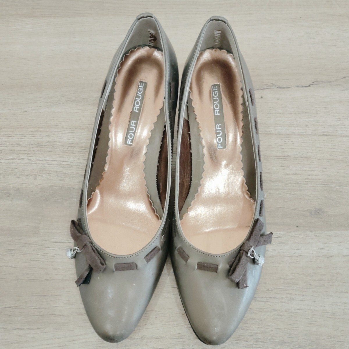 FOUR ROUGE パンプス ヒール 22.0〜22.5cm リボン ブラウン レディース