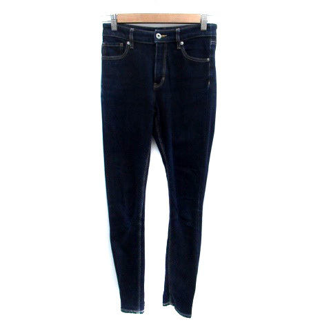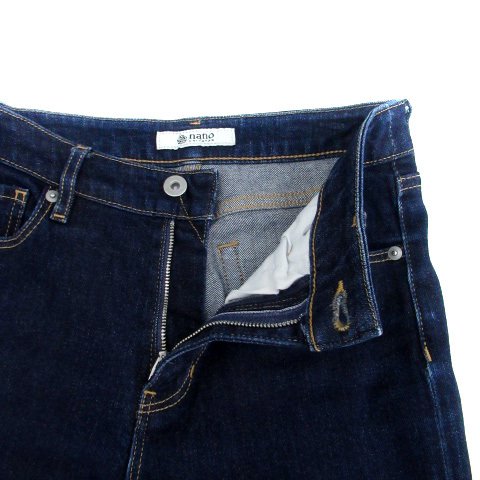 ナノユニバース nano universe デニムパンツ ジーンズ スキニーパンツ ロング丈 ウォッシュ加工 36 S 紺 ネイビー レディース
