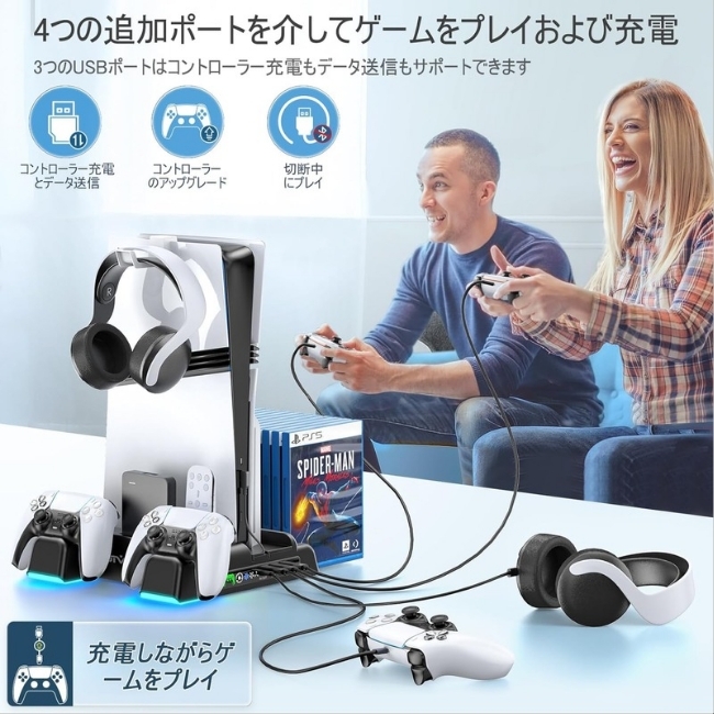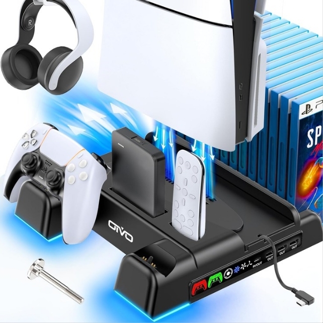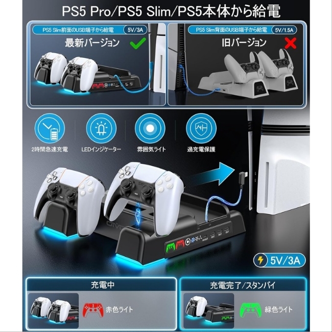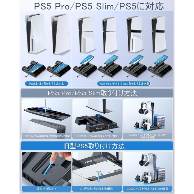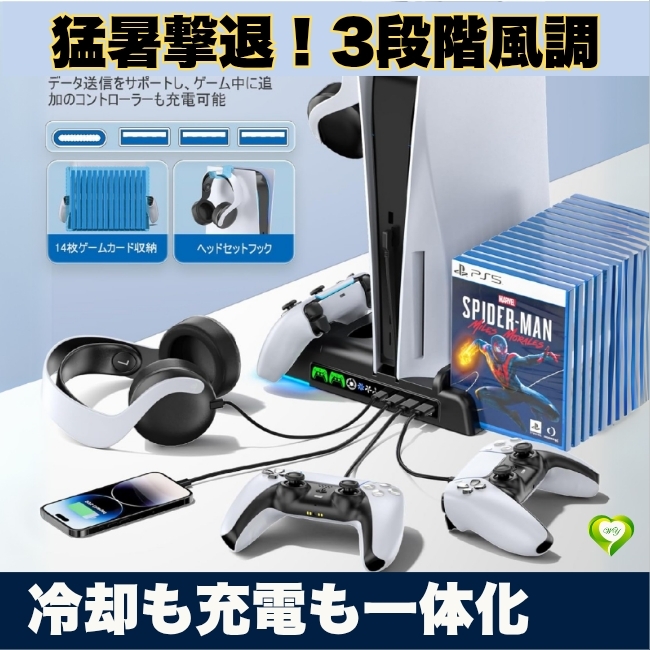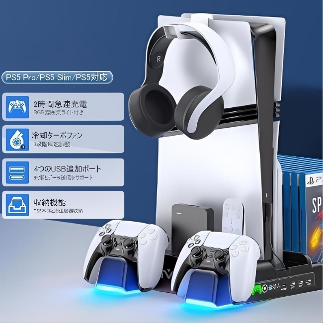ご覧いただきありがとうございます。 商品名:PS5 Pro/PS5/PS5 Slim 縦置きスタンド 3in1 冷却+充電+収納 【この商品が品質で選ばれる理由】 PS5全機種に対応し、冷却、充電、収納を兼ね備え、快適なゲーム環境を提供する多機能スタンドです。 ■こんな悩みありませんか? ・大切なゲーム機を傷や汚れから守りたい ・ゲーム機のデザインを損なわずに保護したい ・友達へのプレゼントで何を選んだらいいか悩む ★こんな時におすすめ! ・新しいゲーム機をすぐに保護したい時 ・ゲーム機のデザインを気分に合わせて変えたい時 ・ゲーム好きの友人への贈り物を選ぶ時 ------------------------------------- 【商品特徴】 ・PS5 Pro/新型PS5/旧型PS5対応: PS5 Pro、新型PS5、旧型PS5の通常版とデジタル版両機種に対応しています。 PS5スリムスタンドはPS5本体の冷却、純正コントローラー2台同時充電、ゲームディスク14枚収納、ヘッドセット収納、ディスクドライブとリモコン収納の機能が一体に揃います。 ・3段階速度調整のターボ冷却ファン: 内蔵の速度調整可能な冷却ファンは、PS5コンソールの下部の空気循環を加速して放熱を実現します。 PS5 Proスタンドの右側にあるタッチスイッチで冷却ファン速度の「高-中-低-オフ/オン」の4段階を調整できます。 高、中、低段階には対応するファンアイコンが速度段階の切り替えに伴ってブルーライトに点灯します。 ・分かりやすいLED充電インジケーター: PS5スタンドには2つのコントローラー充電位置があり、純正PS5コントローラーを2台同時に充電できます。 PS5コントローラーの充電状態は、LED充電インジケーターで一目で分かります。 充電中は赤ライトに点灯し、スタンバイ/充電完了時はグリーンライトに点灯します。 ・4つのUSB追加ポート: PS5 Slimスタンドは内蔵のUSBケーブルを経由でPS5本体から給電します。 PS5 スリム スタンドの側には3つのUSBポートと1つのTYPE-Cポートがあり、コントローラー充電もデータ送信もサポートできます。 ・安定性抜群: プレステ5 縦置きスタンドは保護回路があり、過電圧、過電流、過熱、短絡などを防止できます。 固定用のネジを使用してPS5コンソールとプレステ5スタンドを固定し、動かしても安心です。 さらに底面に滑り止めを配置して、安定感が向上します。 【商品仕様】 ・プレステ5 縦置きスタンド x 1 ・PS5 Pro/Slim用のパネル x 1 ・初期型PS5用のパネル x 1 ・ヘッドセットフック x 1 ・PS5本体固定用ネジ x 1 ・取扱説明書 x 1 ご不明な点などございましたら お気軽に「質問する」からお問い合わせください。 |
