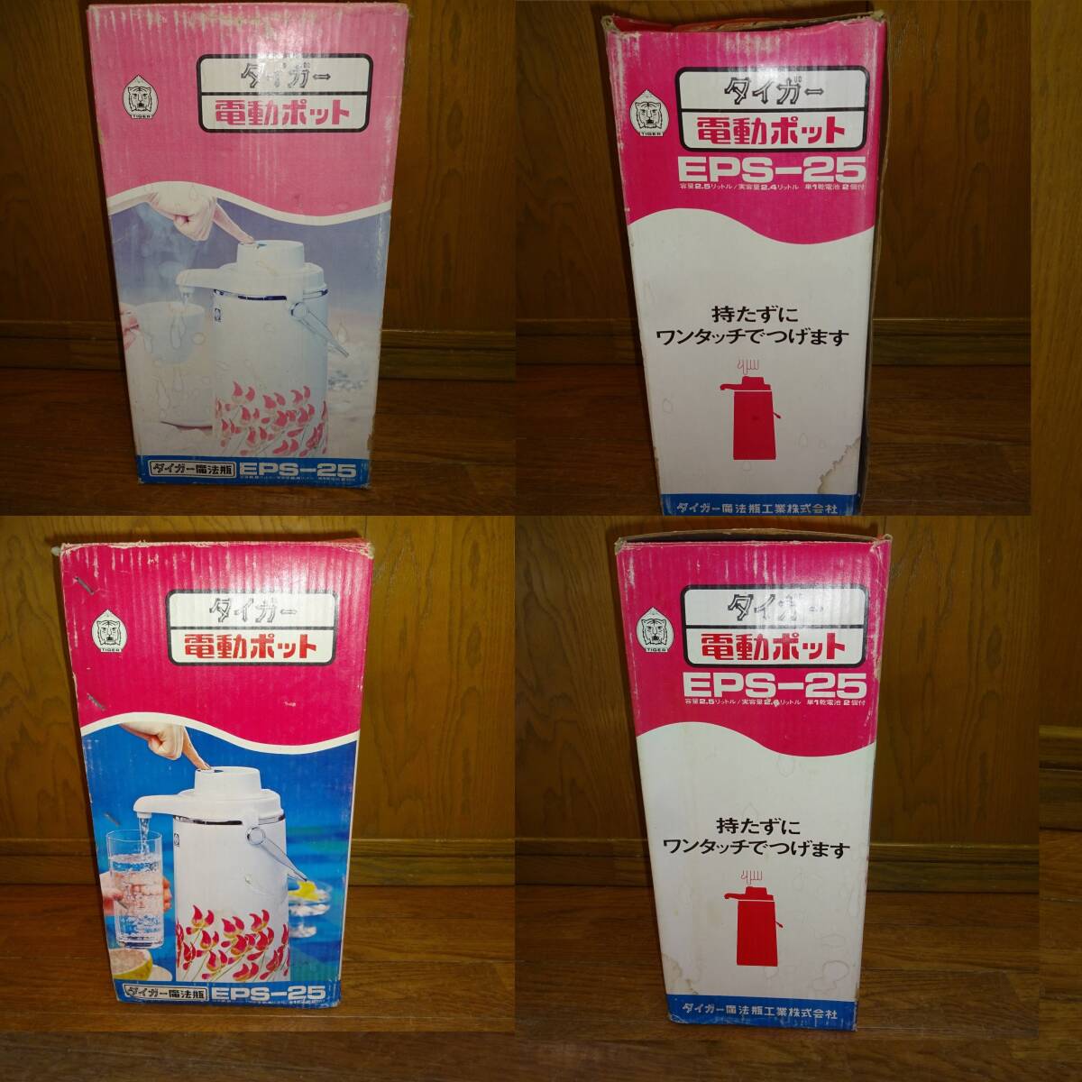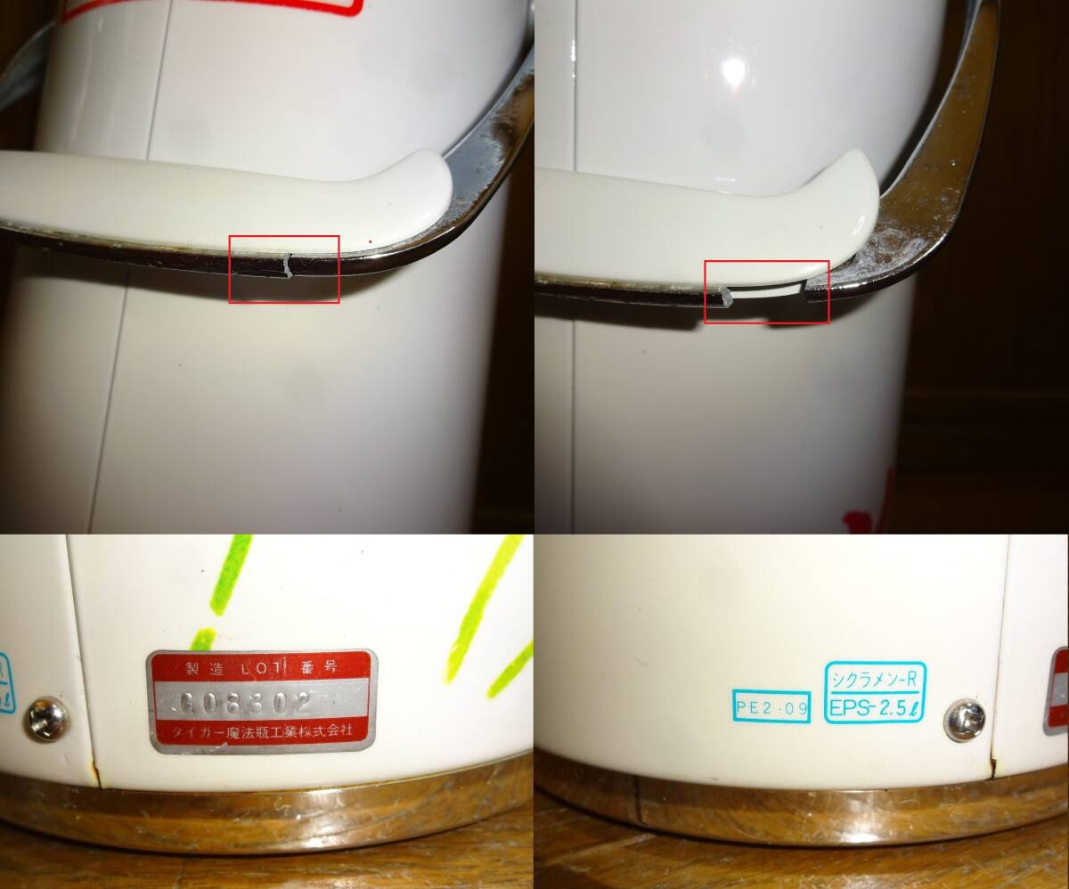 タイガー魔法瓶EPS-25 タイガー電動ポット 2.5㍑ レトロ花柄ポット 電池式魔法瓶 ハンドルに難有り