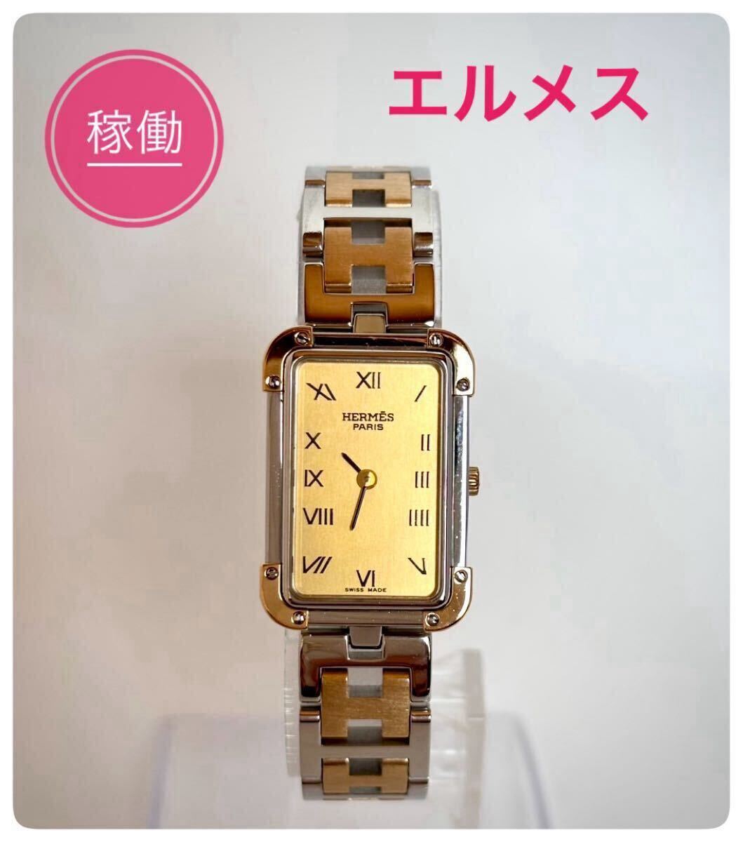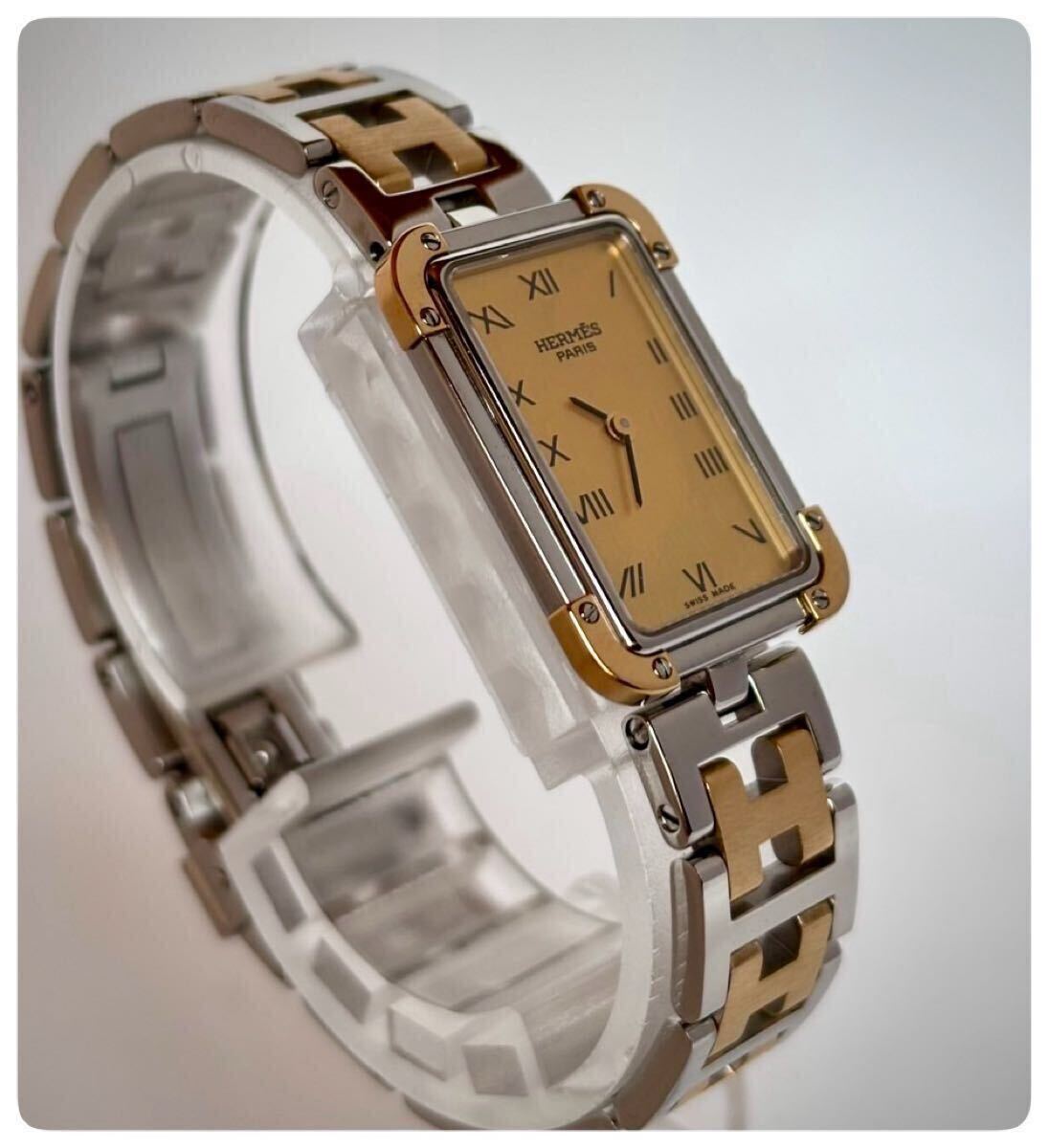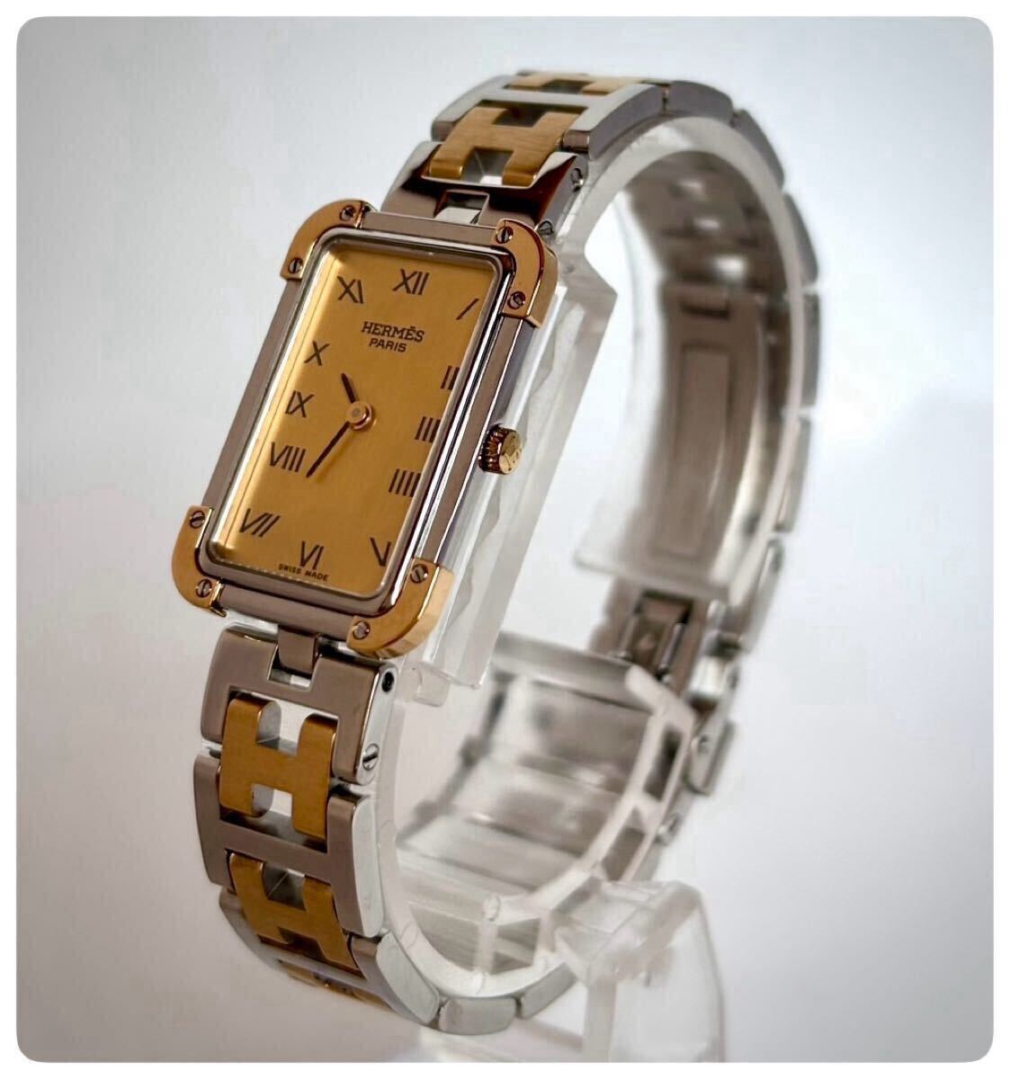 ・エルメスウォッチの「クロアジュール CR1.220 コンビ Dバックル クオーツ ゴールド文字盤 レディース」です。