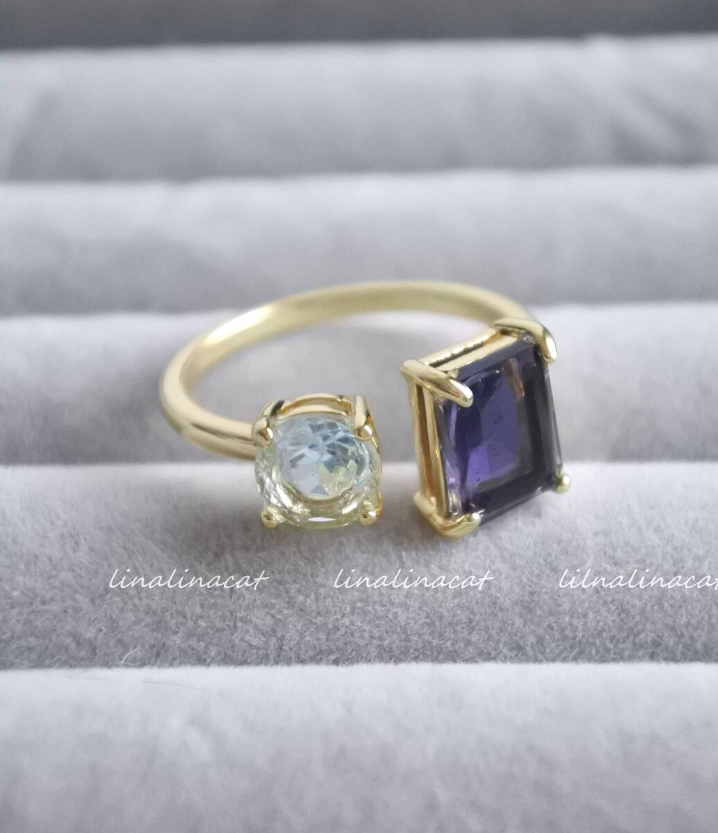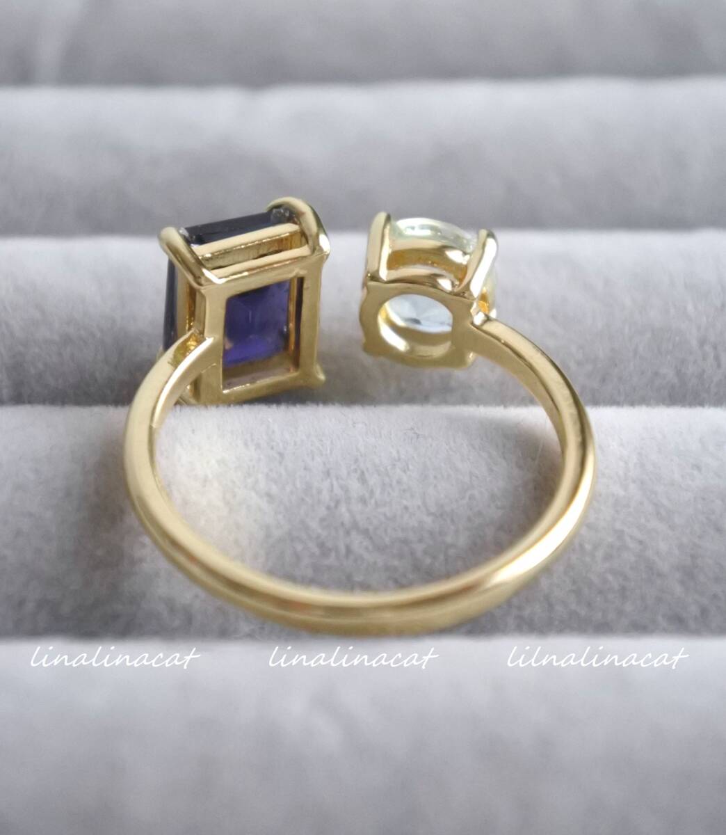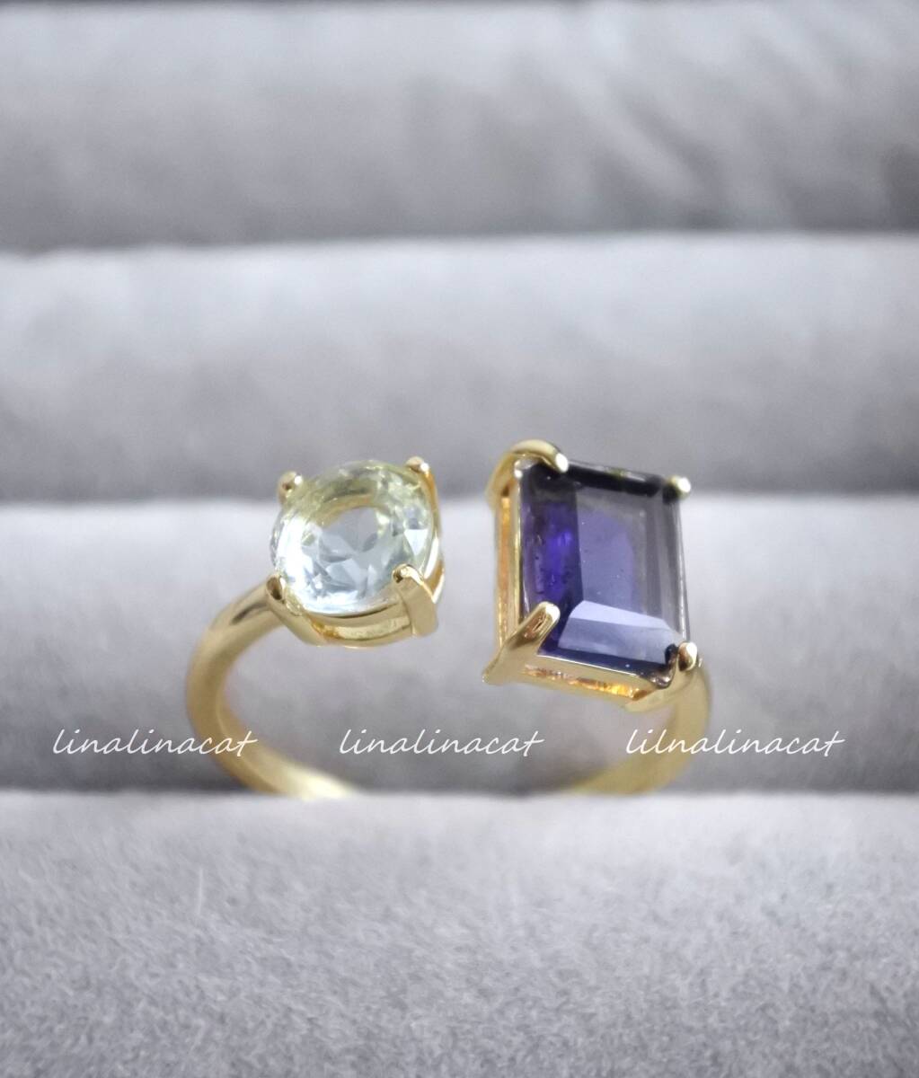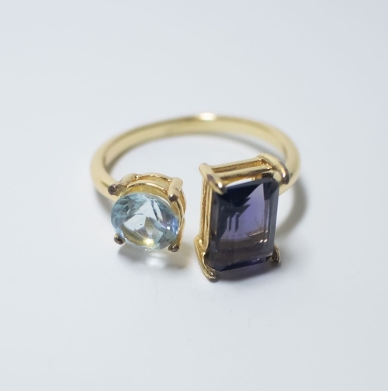 Size: free インド産の宝石質アイオライトと、ブラジル産の宝石質スカイブルートパーズを使用したリングです。 おしゃれなフォークリングデザイン。 透明感のあるブルーのグラデーションが美しく、澄んだ空のようなスカイブルートパーズと、角度によって表情が変わる神秘的なアイオライトの組み合わせ。 甘くなりすぎず、凛とした印象の中に上品な個性が光ります。 2色の石を使用したフォークリングは、推しカラーを組み合わせた“推し活リング”としても人気です。 【リングのサイズ】フリーサイズ12号〜(広げることが可能です) 【リングの素材】真鍮、[メッキ]ニッケルフリー ※金属アレルギーが出にくい素材です。 【石の種類】スカイブルートパーズ(ブラジル産)・アイオライト(インド産) 【石のサイズ】6×6mm・8×6mm ※ 天然石は1つ1つ色や模様が異なります。ご理解の上でご購入ください。 【アイオライトの石言葉】 内省・真実・直感力 【スカイブルートパーズの誕生石】 3月 【アイオライトについて】 “ビジョンの石”とも呼ばれ、心の迷いを晴らし、自分の進むべき道を示してくれると言われています。 深いインスピレーションや集中力が欲しいときのサポートにも。 【スカイブルートパーズの石言葉】 希望・誠実 【スカイブルートパーズの誕生石】 11月 【スカイブルートパーズについて】 クリアな思考と冷静な判断力をもたらすとされる石。 心を穏やかに保ちたいときや、信頼関係を築きたいときにおすすめです。 呪術廻戦など 無印良品、ジャーナルスタンダード、シップス、トゥモローランド などお好きな方にもお勧めです。 クロゼット整理のため他にも出品中です。 おまとめ取引も大歓迎ですのでお気軽にお声がけくださいね。 | ||