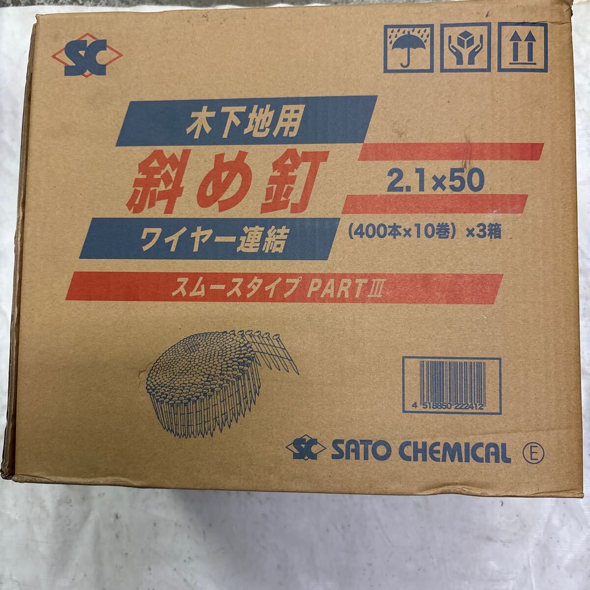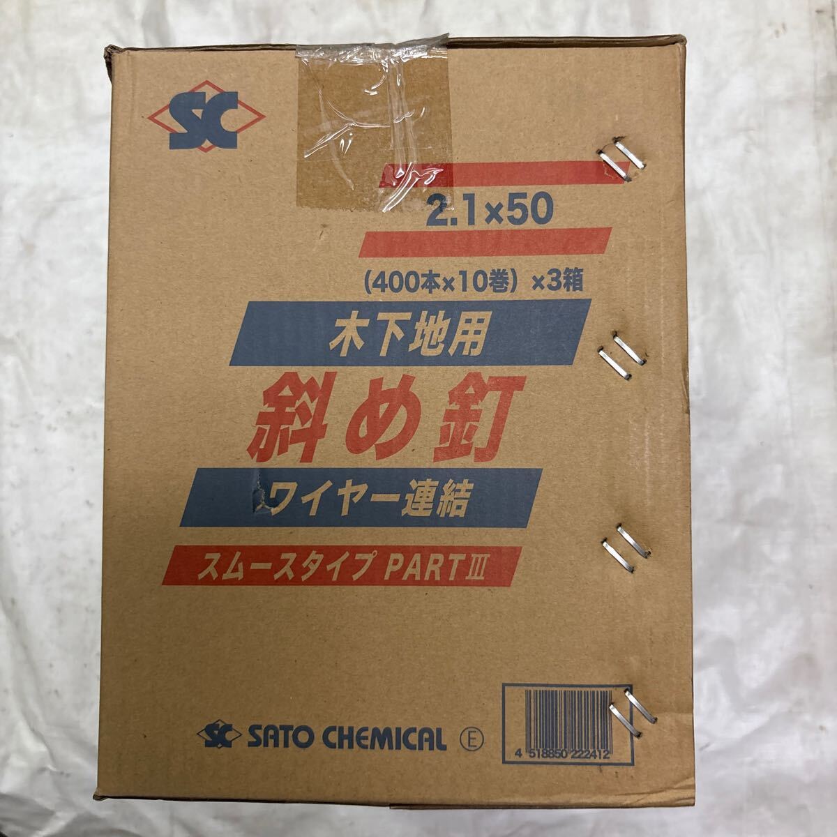 佐藤ケミカル、斜め釘、ワイヤー連結スムースタイプPART III、400本X10巻X3箱、12000本、未使用、保管品です。