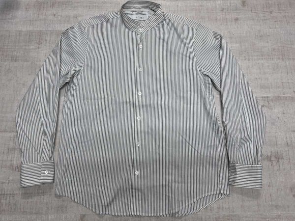 アウール AOURE キレイめ トラッド ストライプ バンドカラー スタンドカラー 長袖シャツ メンズ コットン混合 M ライトグレーです。