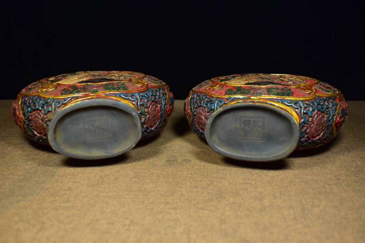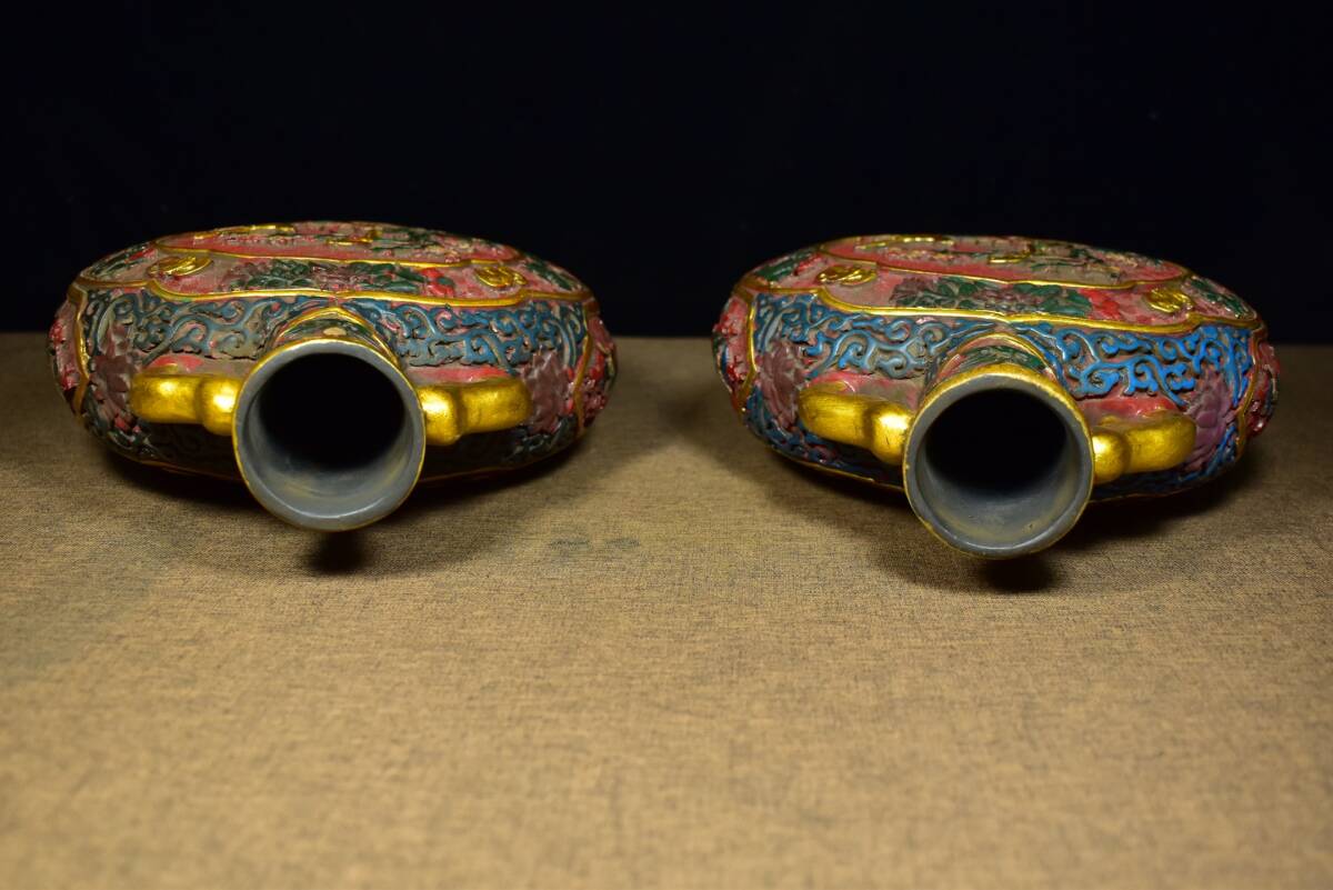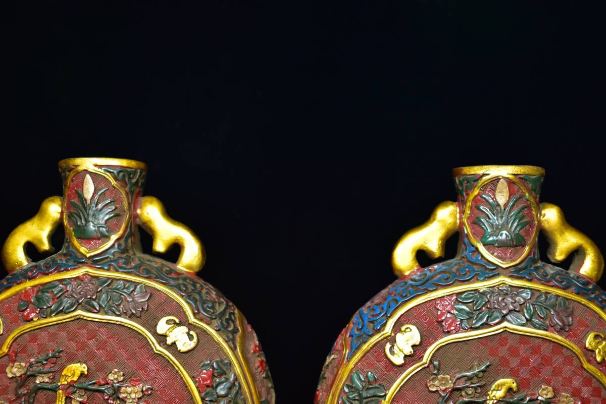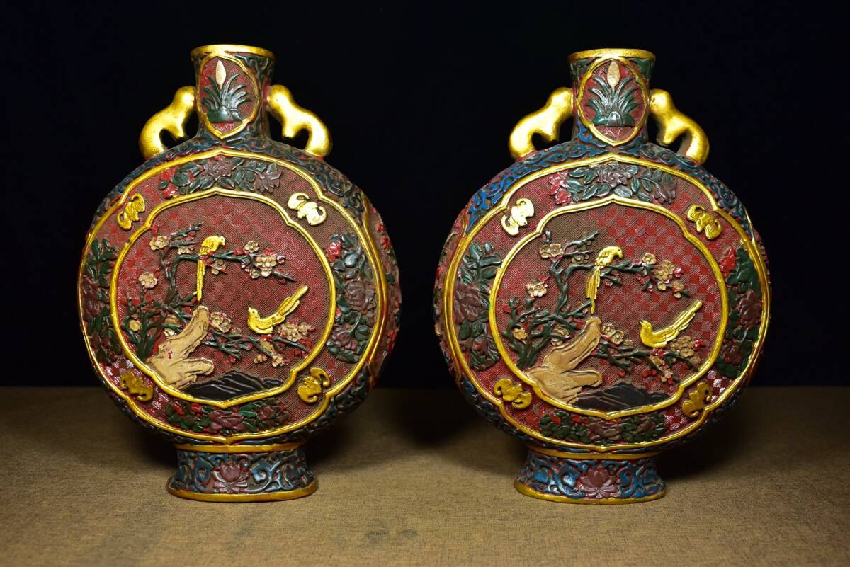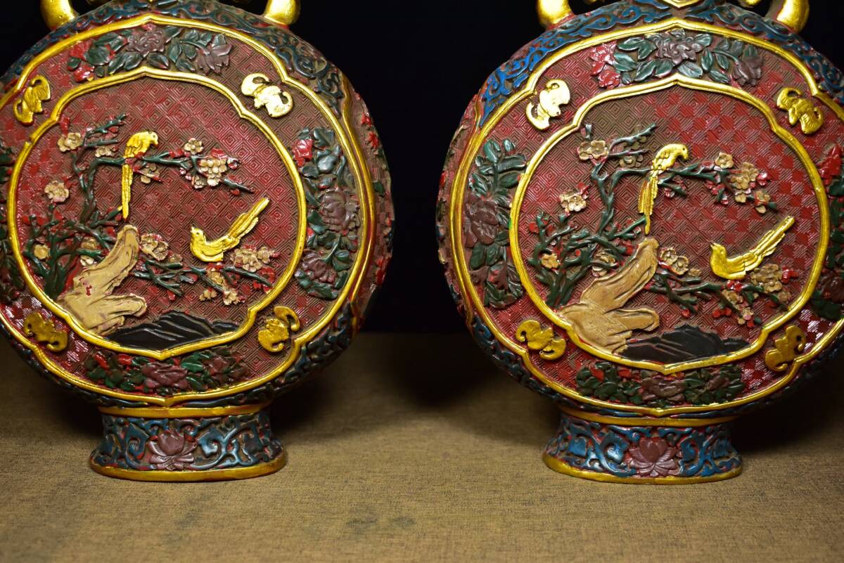 人間国宝 木製 【透き通った漆塗りの花瓶一対です】中国古美術 木彫 工芸品 彫刻品 珍材木彫 珍品旧蔵 伝世家珍 | |||