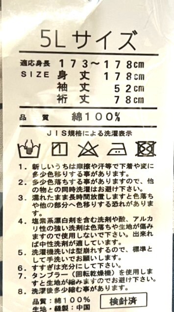 | サイズ | ■サイズ 5L 身丈約178cm 袖丈約52cm 裄丈約78cm 適合身長173cm~178cm ※身丈はおはしょりで調整できます。 |
