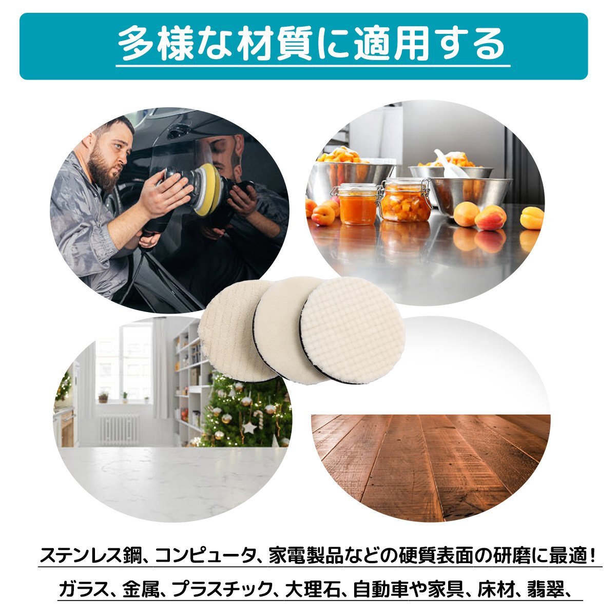 全国一律【送料無料】ウールバフ 研磨パッド 125mm 細目・中目・粗目 3個入り マジック式 ポリッシャー 車のワックスパッド 洗車