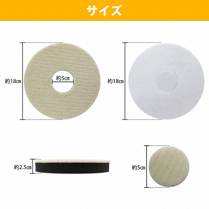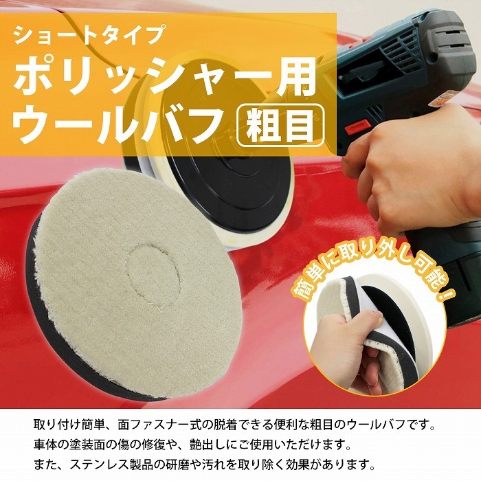 【粗目/Φ180】ウールバフ 外径 180mm ポリッシャー 研磨 バフ 掛け 洗車キズ 水垢 艶出し 塗装 仕上げ 目消し 磨き 車