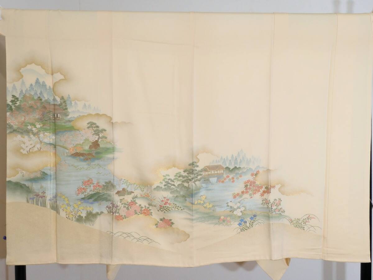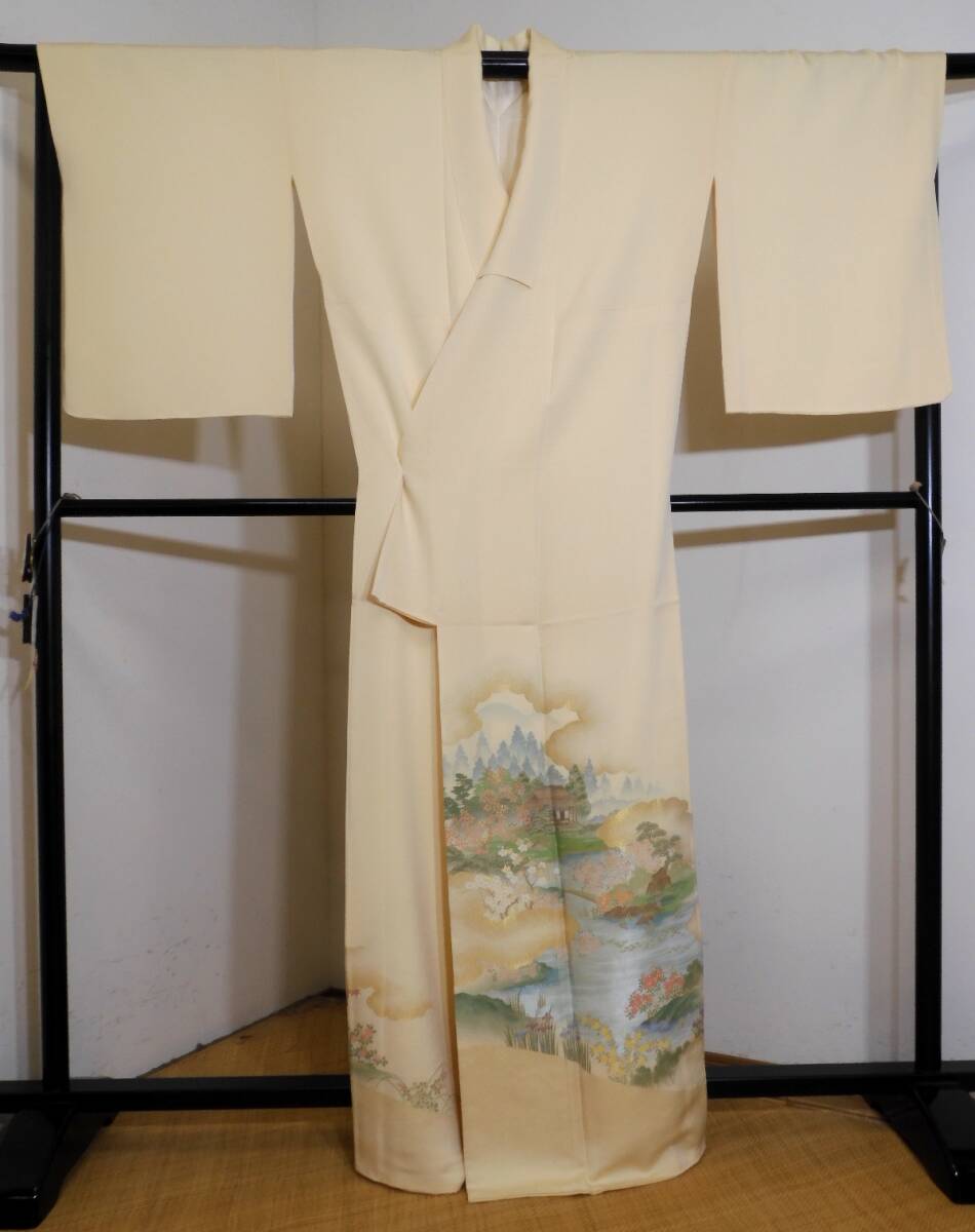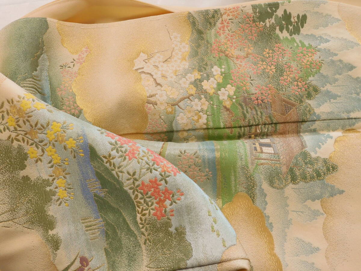 <銀の斧>正絹・寿光織色留袖・離宮の春秋・しつけ付美品・現代サイズ・静かな美しさ・共八掛