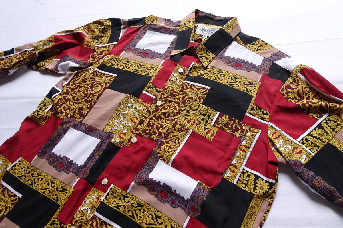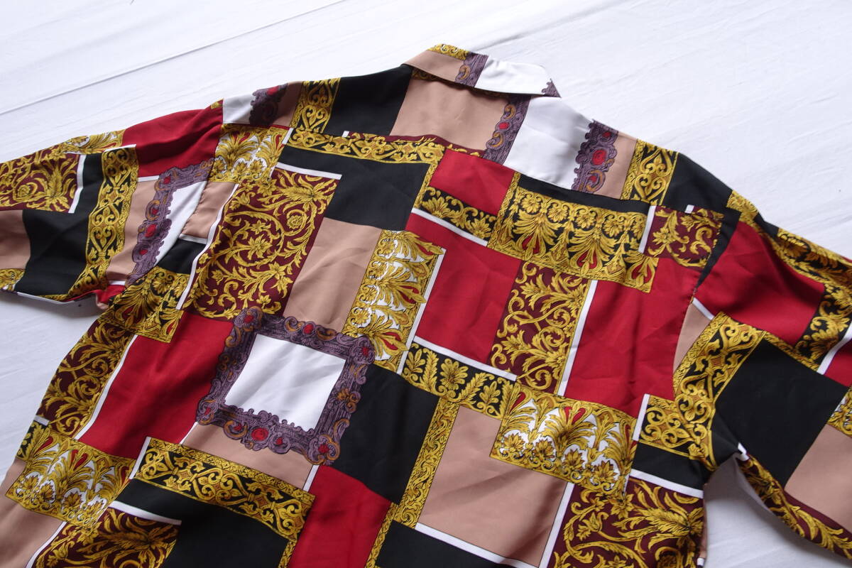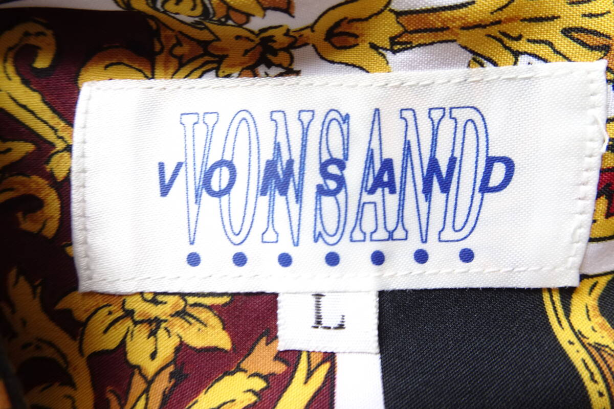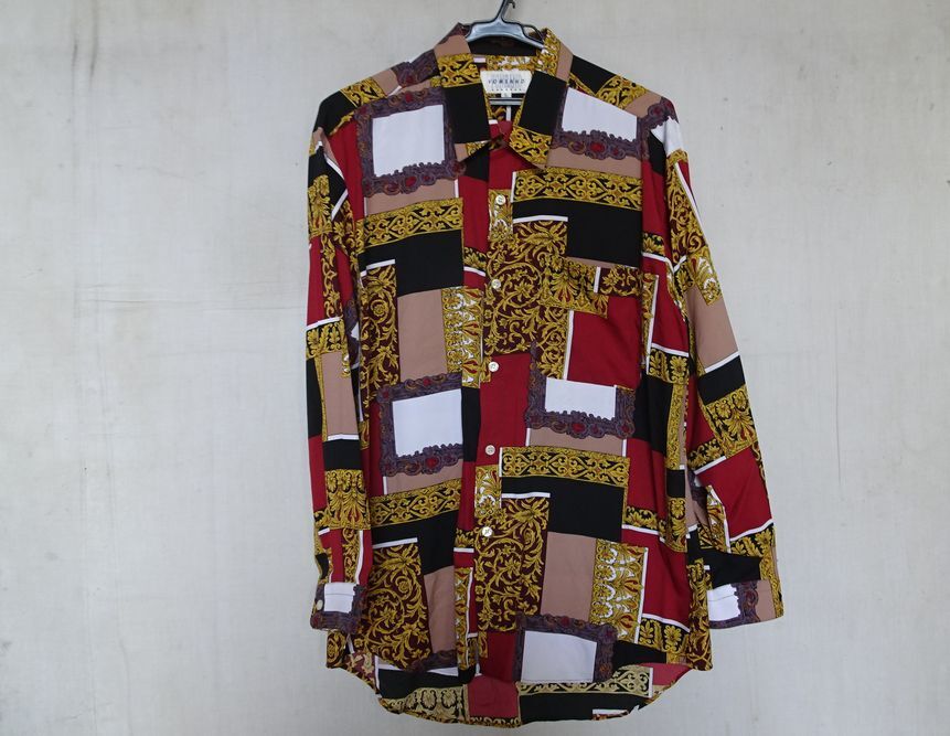 VONSAND/長袖シャツ/薄手素材/スカーフっぽい柄/額物/四角形/派手柄/赤/レッド/黒/ブラック/白/ホワイト/Lサイズ(6/17R7)