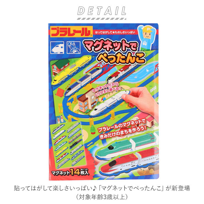 | 商品説明 | ・・貼ってはがして楽しさいっぱい♪「マグネットでぺったんこ」が新登場。(対象年齢3歳以上) ・お子様に人気のキャラクターや乗り物デザインのマグネットボード。 ・台紙内面にマグネットを自由に貼って、自分だけの世界を作れちゃう★ ・マグネット仕様なので、繰り返し遊べて経済的! ・移動時間や待ち時間の遊びにもぴったり。 ・楽しく遊びながら、手先の動きや想像力、集中力、考えるチカラを養えるアイテム。 ・・【セット内容】マグネット台紙×1冊、マグネットシート×1枚(※種類によって仕様やマグネットの個数が異なります。) |