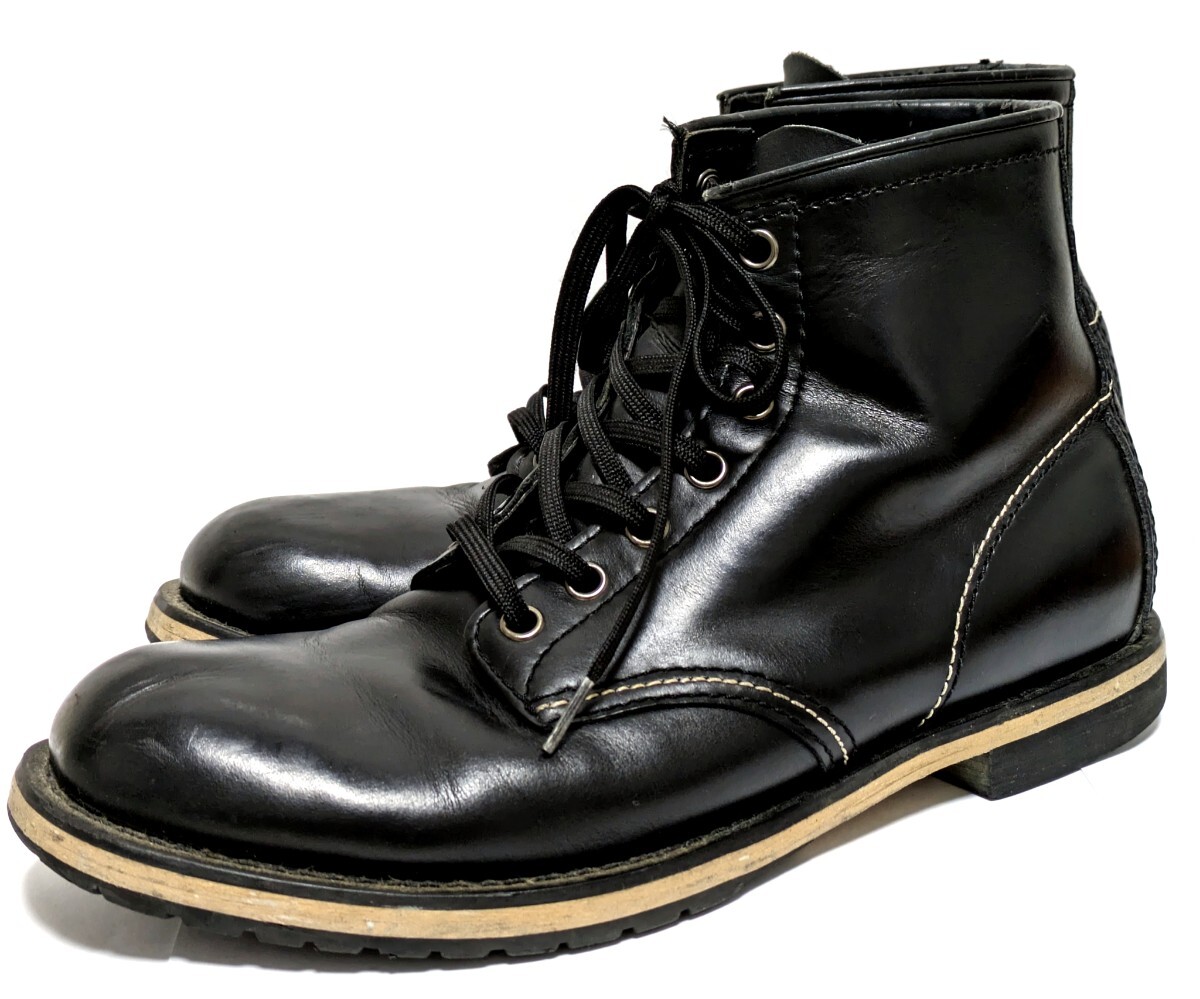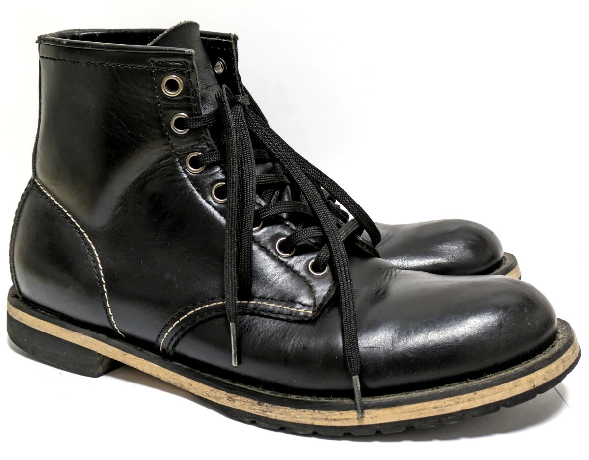 [幅広] Golden Retriever 25cm レースアップブーツ 本革 レザー ブラック プレーントゥ ワーク アメカジ 人気ブランド  革靴