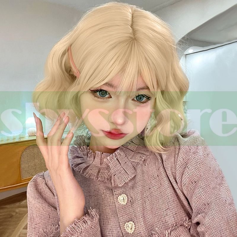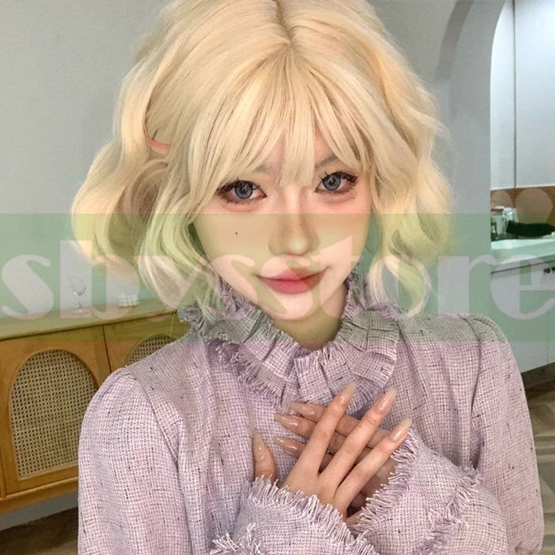 プラチナブロンドウィッグ 女性 ショートヘア かわいく若返る ショートカール 羊毛カール 擬似髪 自然な全頭セット
