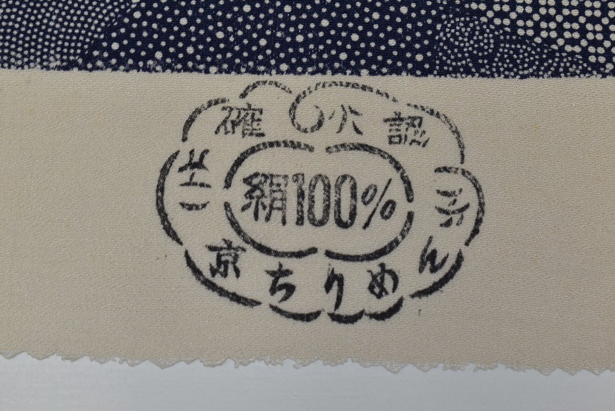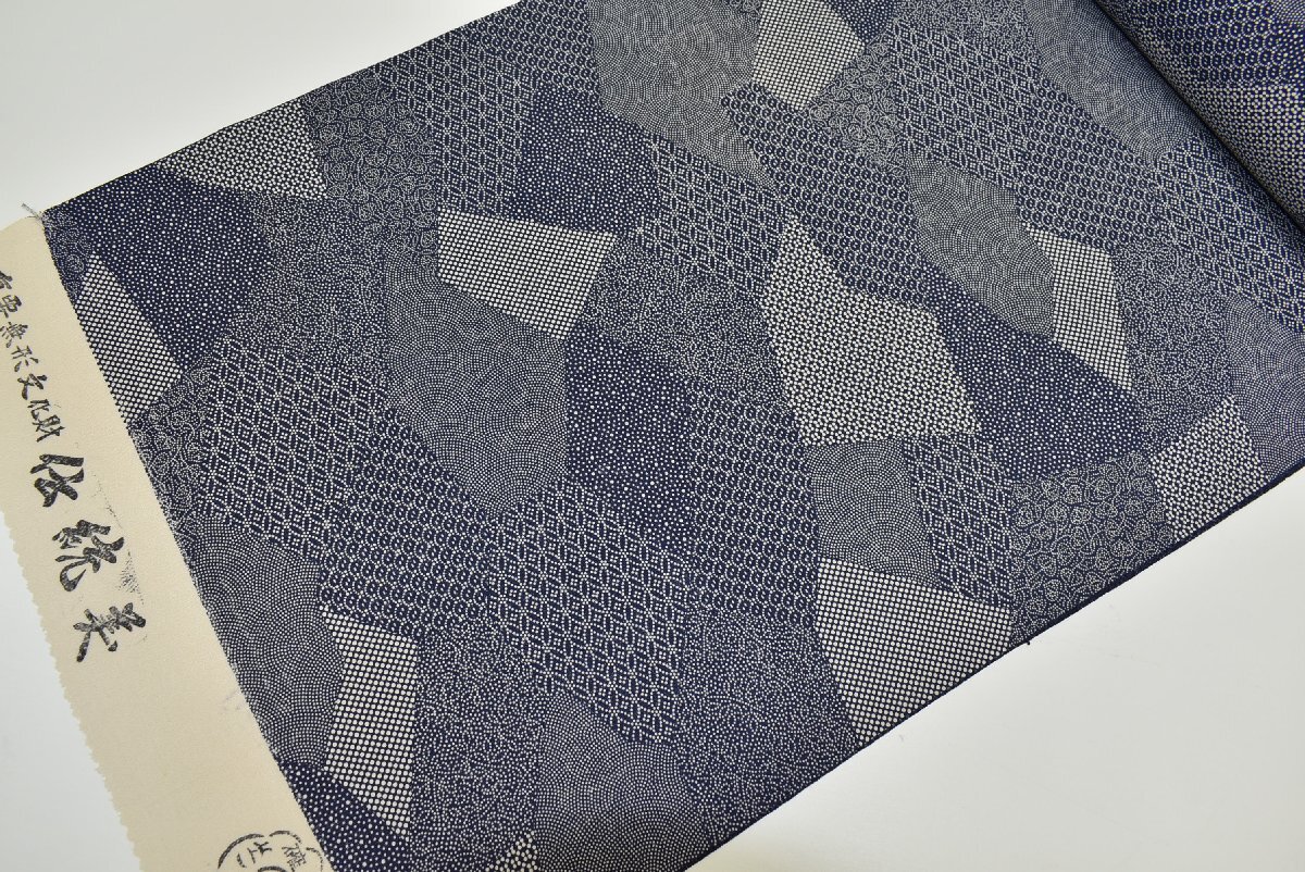 【ちどりや】未使用品 美品 正絹 縮緬 京ちりめん 江戸小紋 着尺反物 重要無形文化財 伝統美 切り出し文様 吉祥文様 寄せ小紋 藍紺 Y337