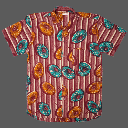 マリで作られたアフリカンワックスの半袖シャツです。