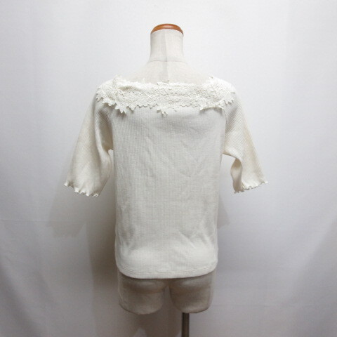 マジェスティックレゴン MAJESTIC LEGON レース装飾 五分袖 リブ カットソー M オフホワイト パールビーズ装飾 レディース