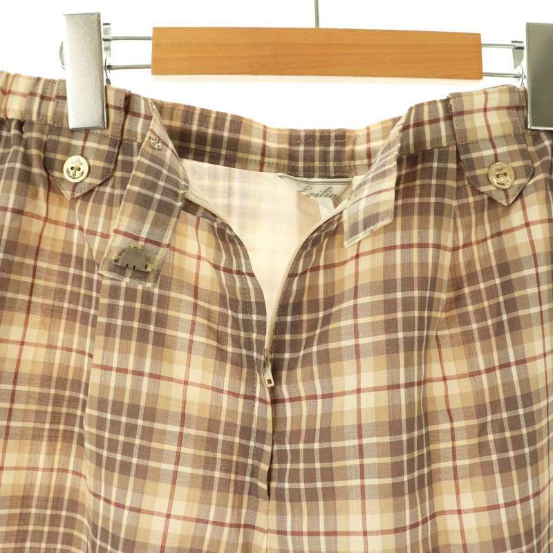 レリアン Leilian キュロット パンツ チェック 大きいサイズ 13+ グレー ベージュ ブラウン /CX ■OS レディース