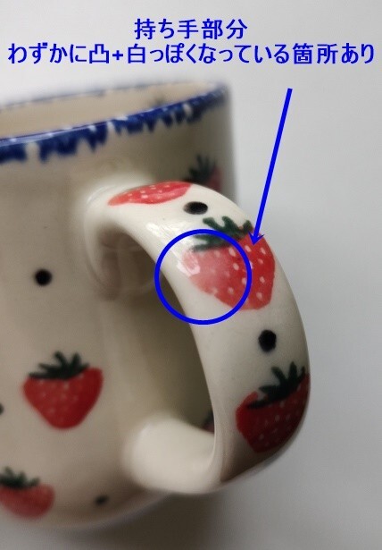 ・持ち手部分 わずかに凸+白っぽくなっている(釉薬が多めなので白っぽく見える)箇所あり
