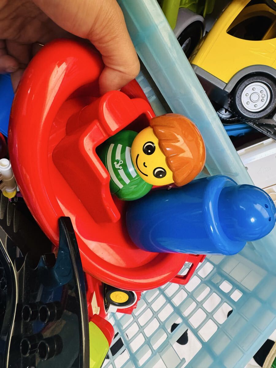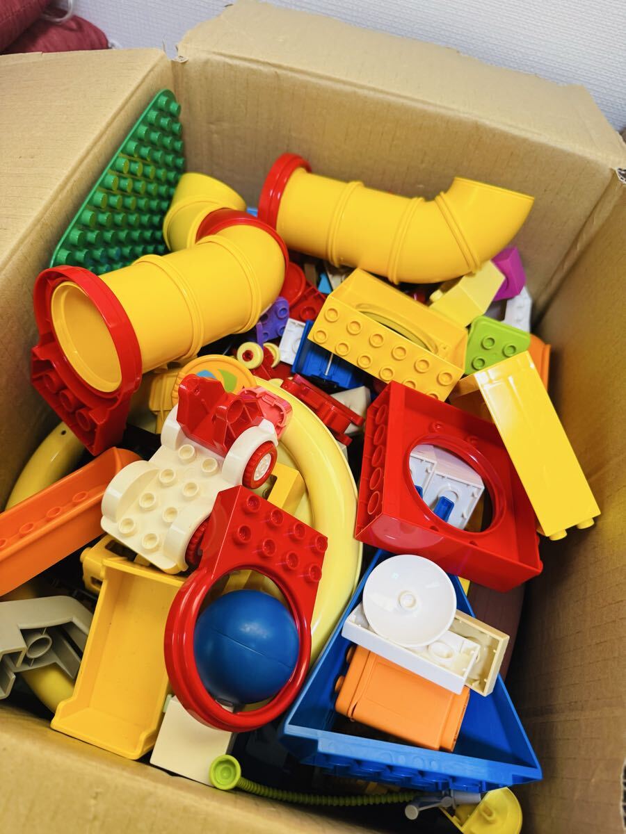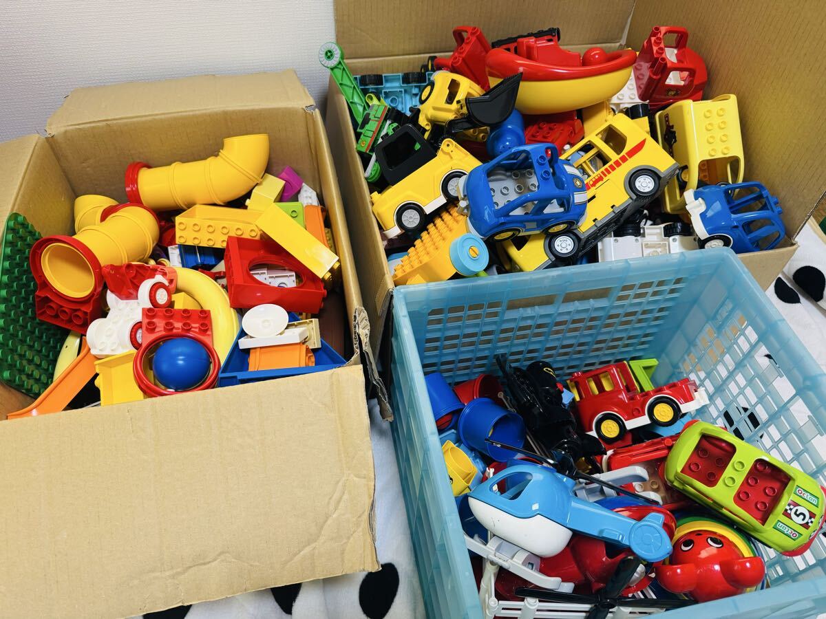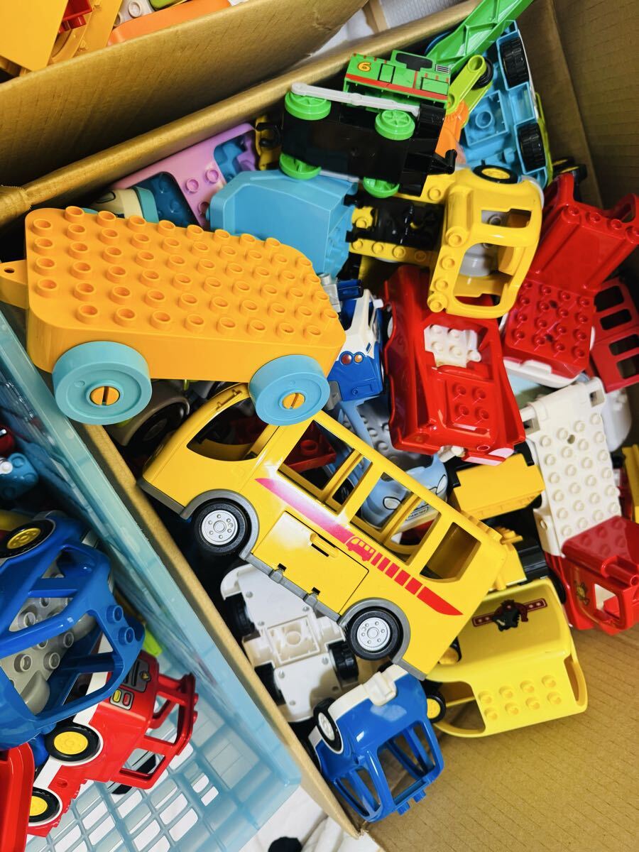 バスや車、重機やヘリコプター、ブロックやトンネルなどが約16kgございます。男の子向けのものが多いかと思います。