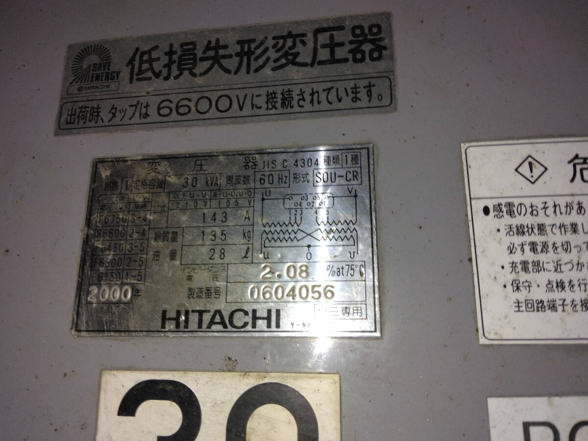 L948 岐阜県大垣市まで直接引き取り限定 ジャンク HITACHI SOU-CR 低損失形変圧器 油入変圧器 日立 トランス 2000年製 7/31