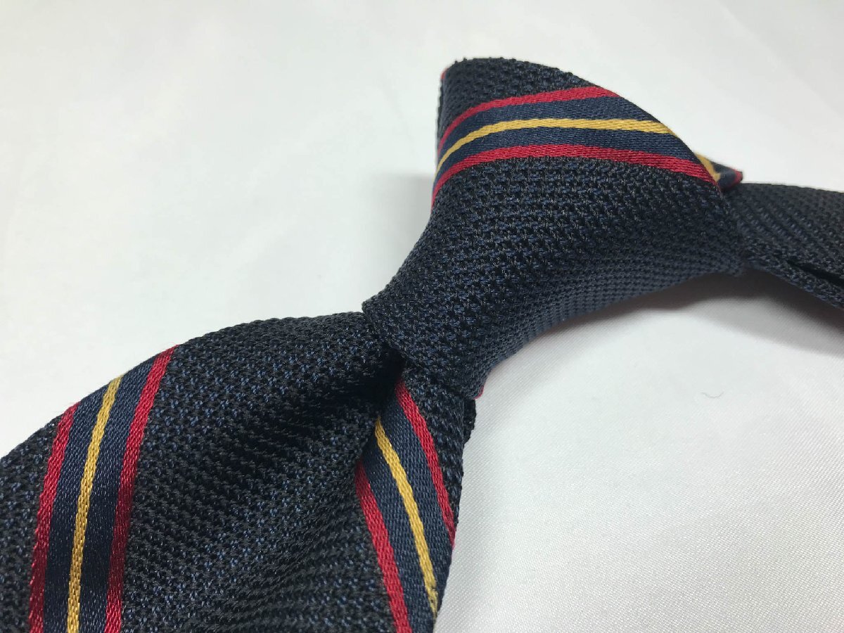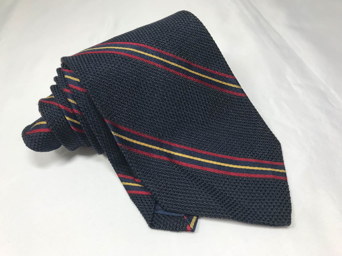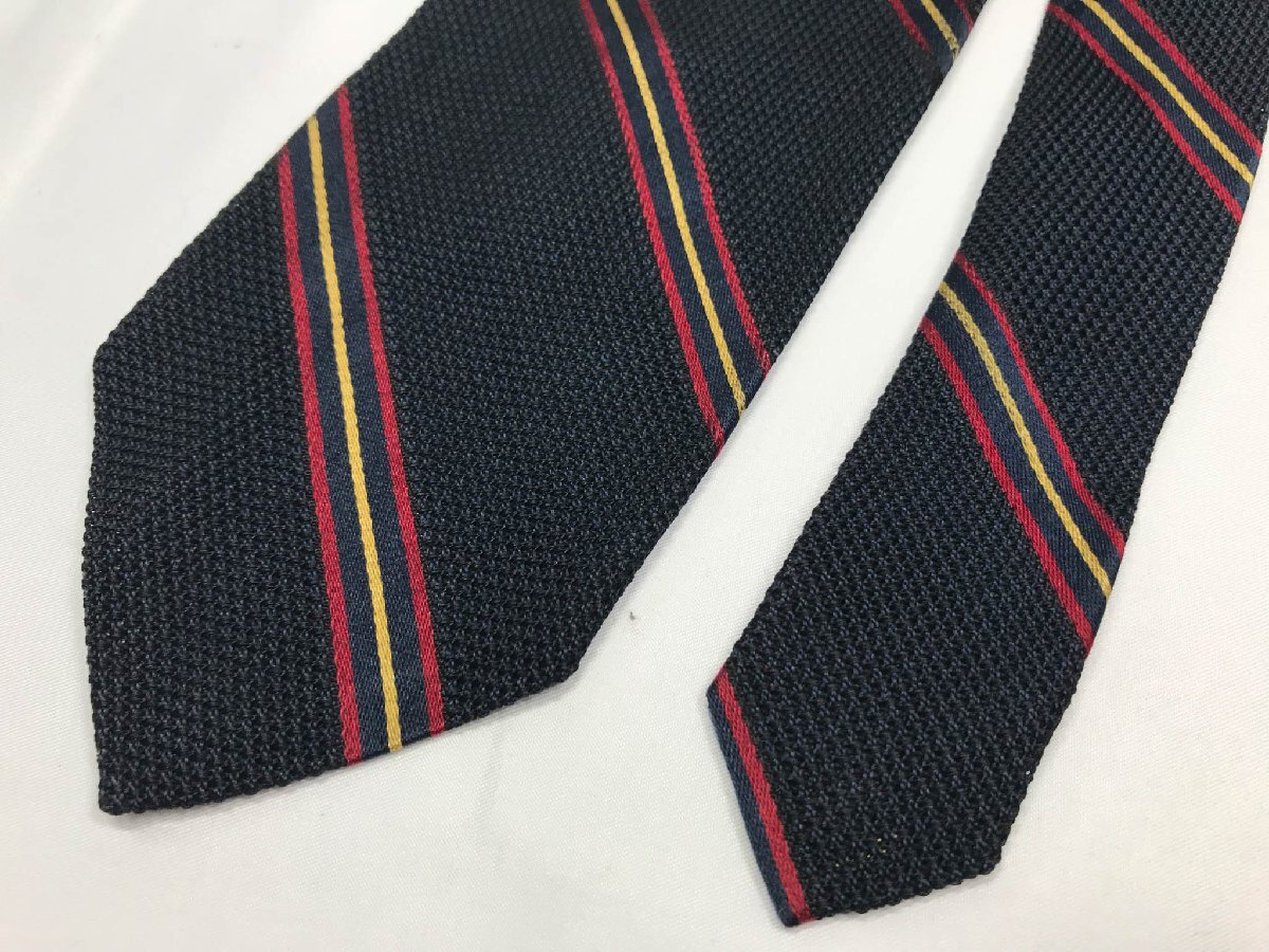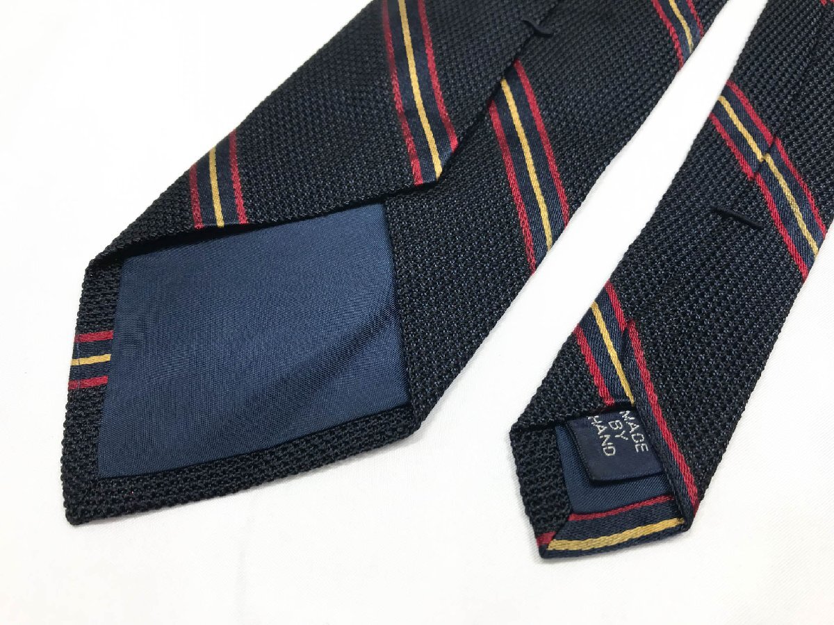 美品 【ラルフローレン Ralph Lauren】 レジメン柄 ニットタイ シルクネクタイ (メンズ) ネイビー×レッド ◇3MM8378◇