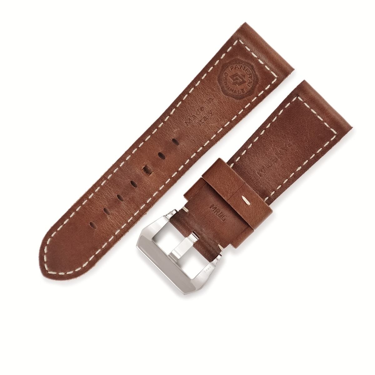 パネライ 腕時計パーツ 純正 ルミノール用 レザー ブラウン 替え レザー 本革 ベルト バンド ストラップ 純正SS製尾錠付き 26mm ブラウン