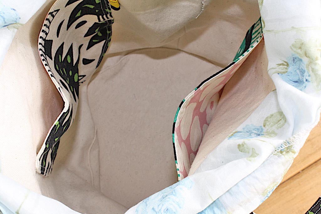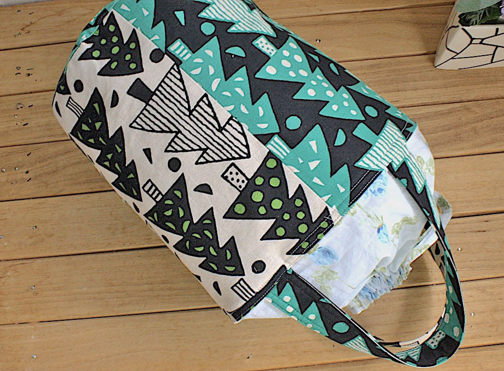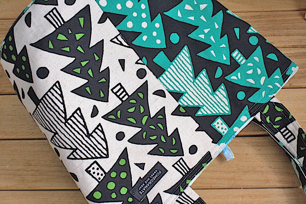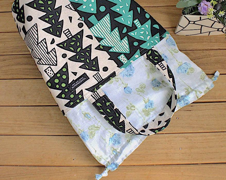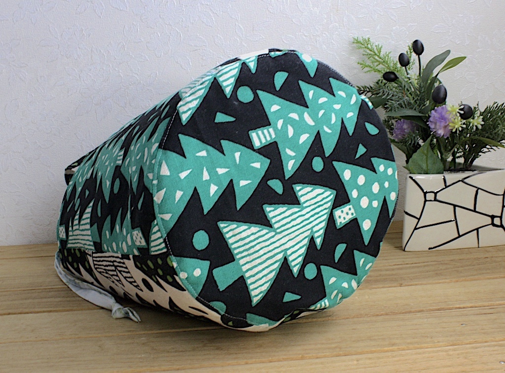★巾着 丸底 バケツ型 トートバッグ「ツリー 木」※表布に厚手接着芯貼付