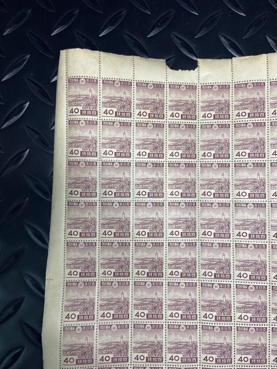 内閣印刷局『第2次昭和切手/オーロワンビ灯台』40銭 100枚シート(半分折り跡)半分折り発送 現状品 ※半分に折ってそのまま封筒に入れてネコポスでの発送になります。 【同梱の場合は別に送料がかかります】 |